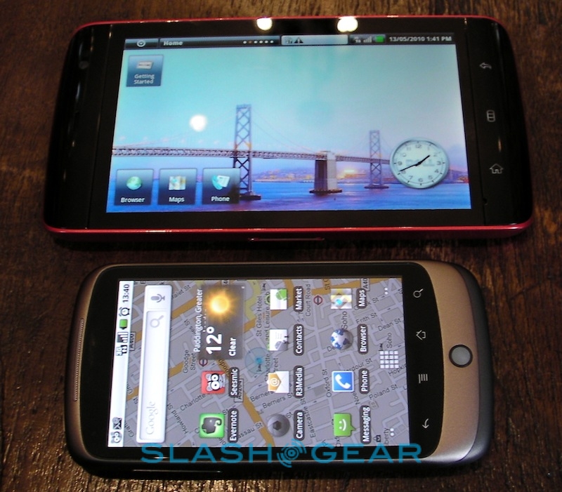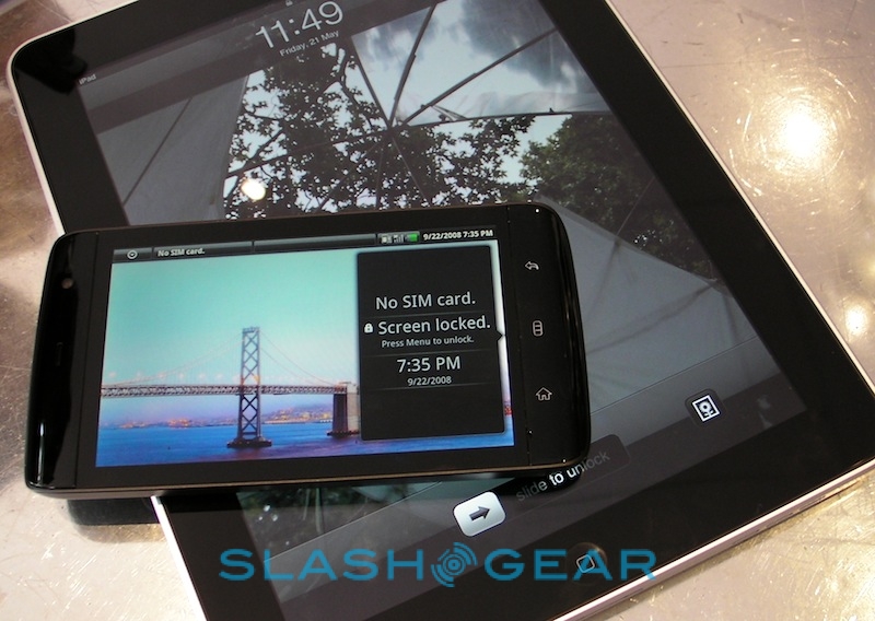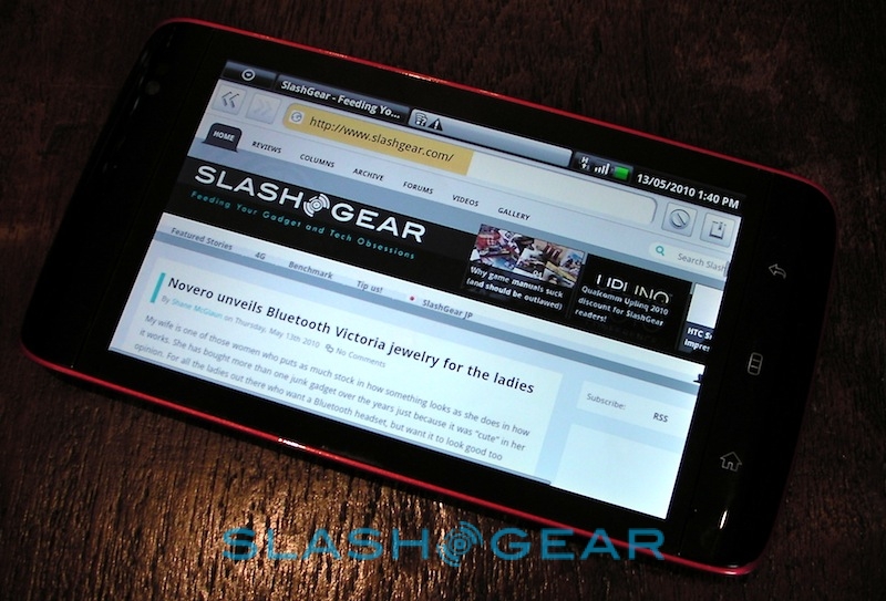 The Streak's wireless capabilities include quadband GSM/EDGE and dualband UMTS/HSPA (7.2Mbps), along with WiFi and Bluetooth. There's a microSD card slot and 2GB of integrated storage, along with GPS for use with Google Maps Navigation. Up against the iPad it's obviously far smaller, but we've a feeling more people will choose to carry the Streak in every-day life despite the reduced screen real-estate on offer. Multitouch worked as expected and the on-screen keyboard manages to be well-spaced but also pack more buttons into a single view than Apple's version.