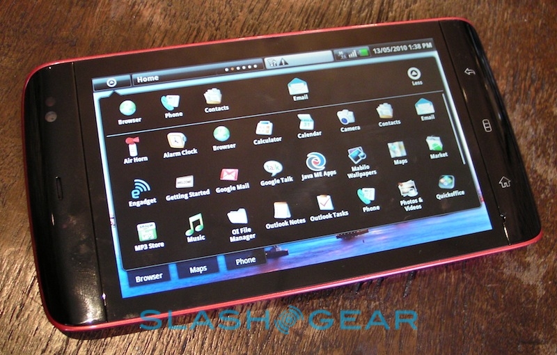 While we've seen 5-inch MIDs before, the Streak manages to break new ground by virtue of its sheer slenderness; for once, this is a MID that you could comfortably drop into the front pocket of your jeans (assuming they're not too fashionably-tight, of course). We've played both with a gloss red unit and the matte black that will be the first to launch, and both – despite being pre-production prototypes – felt well put together with little in the way of flex. Navigation is swift, and Dell's customised UI – which is likely what has delayed the Android 2.2 update – makes things straightforward to use with fingers while also making the most of the screen size. Out of the box it runs Android 1.6.