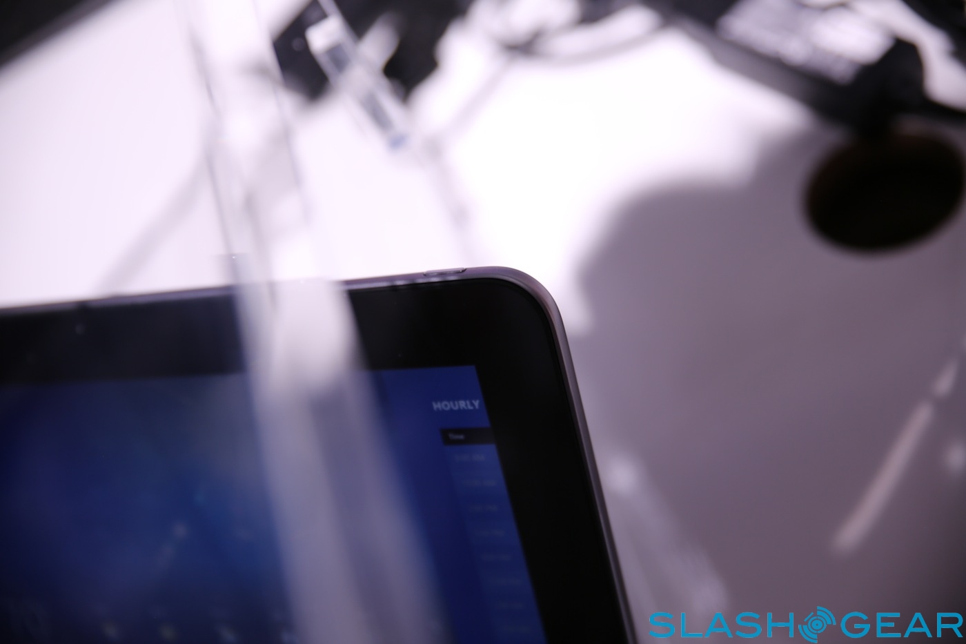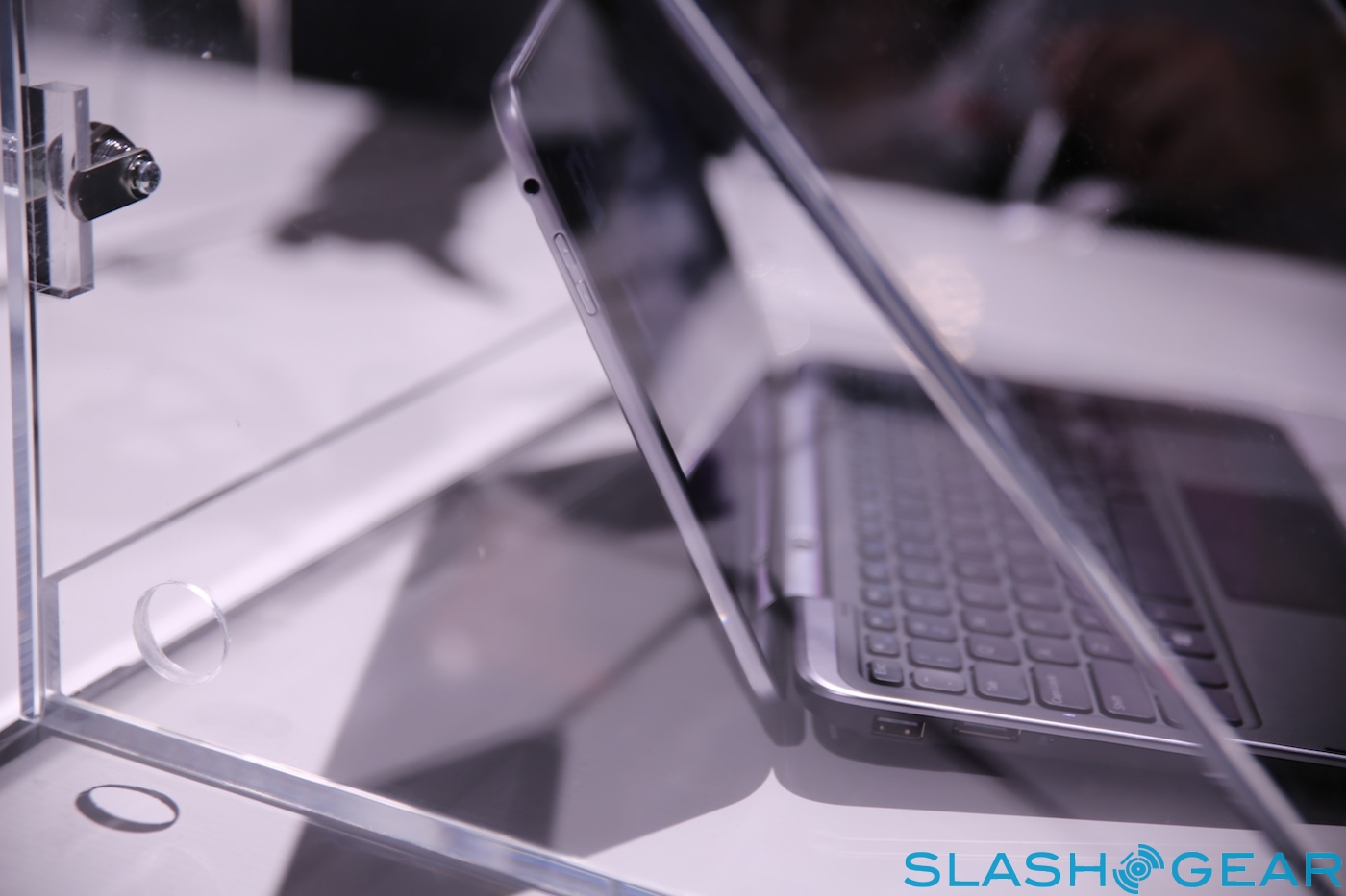 The keyboard dock is slim and will suffer shortened key travel too as a result; again, that'll take more prolonged access to figure out for sure. It's also yet to be seen whether the top section of the slate will overbalance the dock, something we noticed affecting Samsung's ATIV Smart PC Pro.