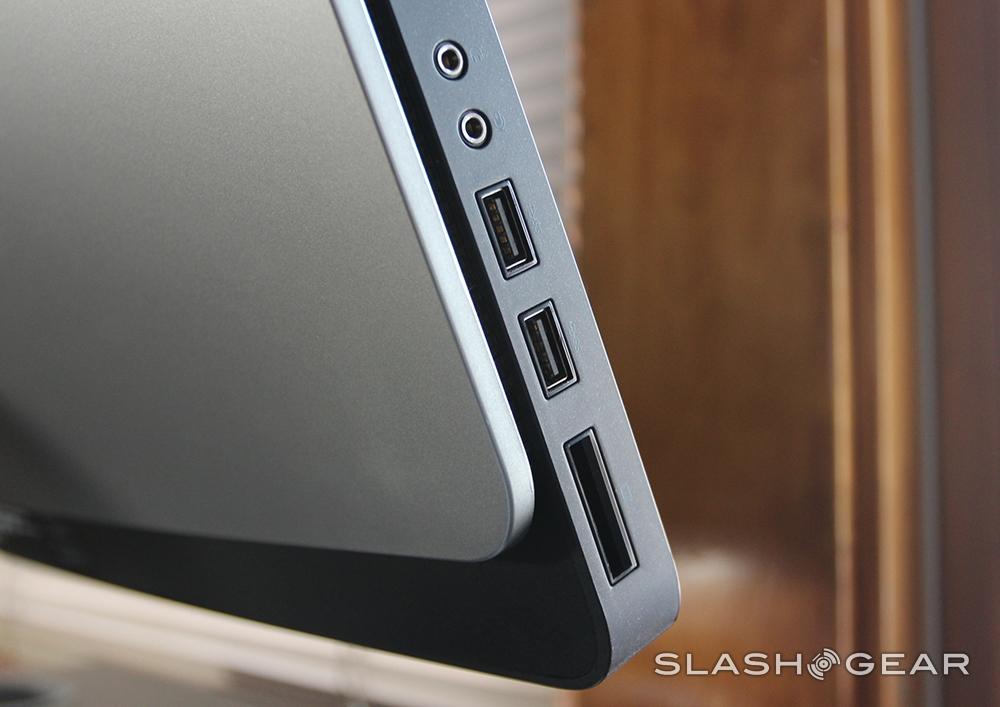 This set of ports includes four USB 3.0, HDMI out, HDMI in, SPDIF 1 (7.1 ch), and ethernet. On the right side of the machine you've got a disk drive for 12.7mm action, DVD+/-RW and BluRay Combo for your pleasure, HDD LED light, and a power button. On the other side you've got an 8 in 1 media card reader with support for SDXC (SD3.0), Secure Digital (SD), Multi Media Card (MMC), Hi Speed SD, Hi Capacity SD, Memory Stick (MS), Memory Stick PRO, and xD Picture Cards alike. Also on the left side you've got two more USB 3.0 ports that are Sleep Charge Capable – how about that?