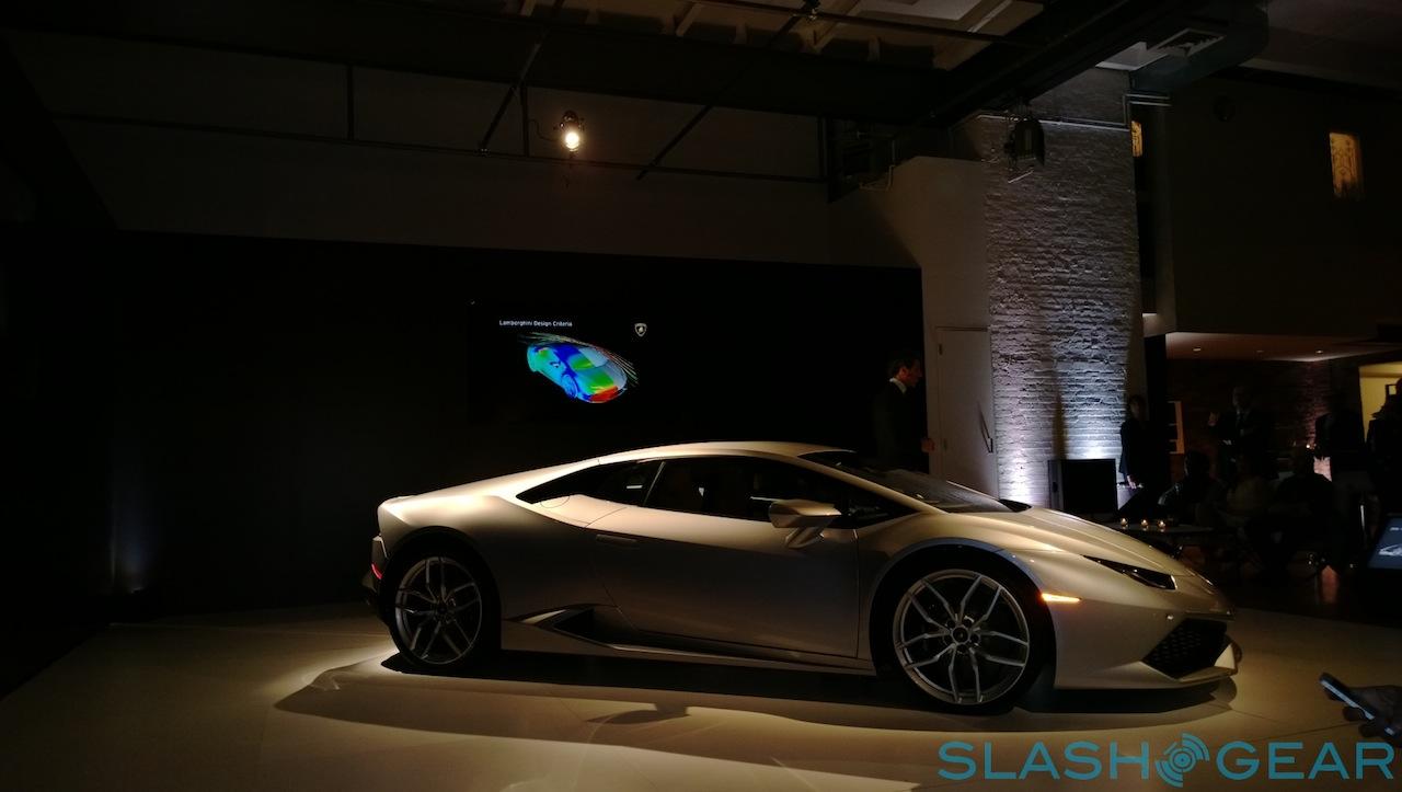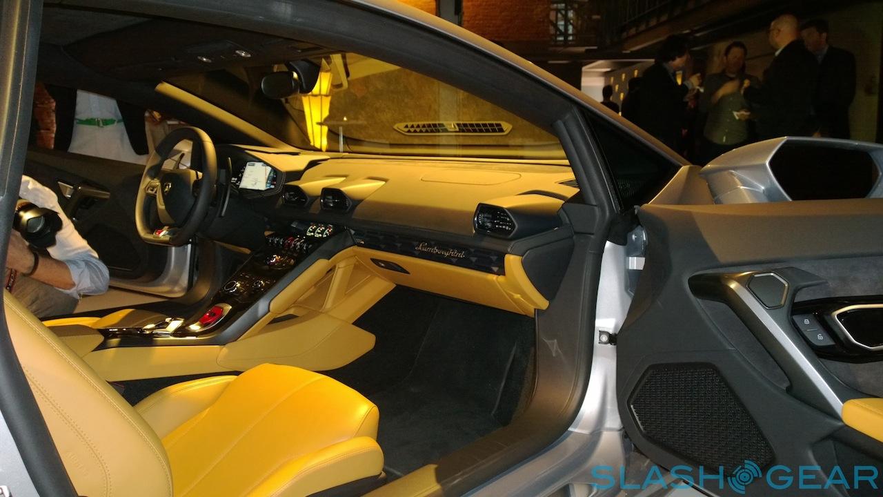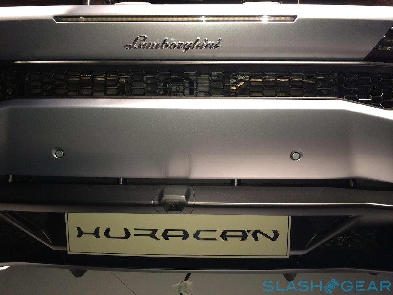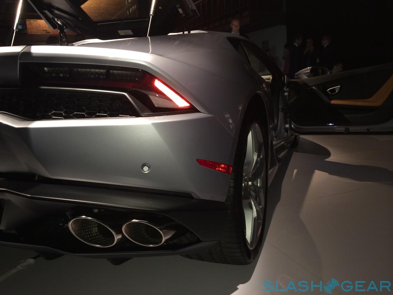 So, you get an updated version of the fighter-jet style lamps front and back, first shown on the Aventador, as well as muscular haunches and a rear three-quarter silhouette reminscent of the Countach.