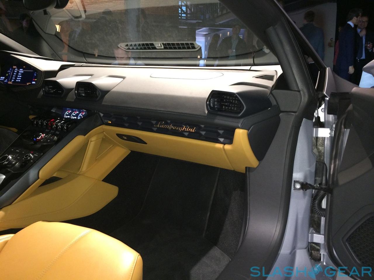 Inside, meanwhile, the fighter jet feel continues. The Hurucán's dashboard – Lamborghini describes it as the cockpit – is a combination of traditional buttons and switches for eyes-free use and a high-resolution 12.3-inch display in the driver binnacle. As we've seen from the 2015 TT from Lamborghini parent Audi, that sort of vast screen can be put to good use showing a variety of virtual gages depending on where you're driving.
