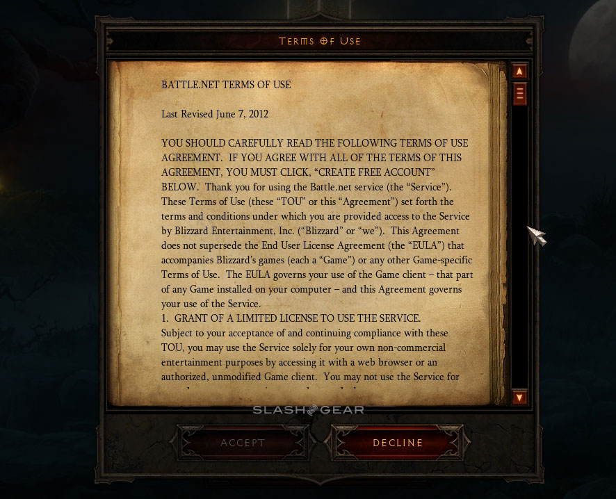 Today is the first day that users will be able to toss real hard-earned cash at virtual items in the game Diablo III online. This game has for some years now been teased to have a real-money auction house (in addition to its more basic virtual gold auction house), and upon the game's launch earlier this year, it's been the most widely anticipated feature not to be included with the initial build. Today when you head online to Diablo III you'll more than likely see an update to your software and a couple of new user agreements before you're allowed to play.