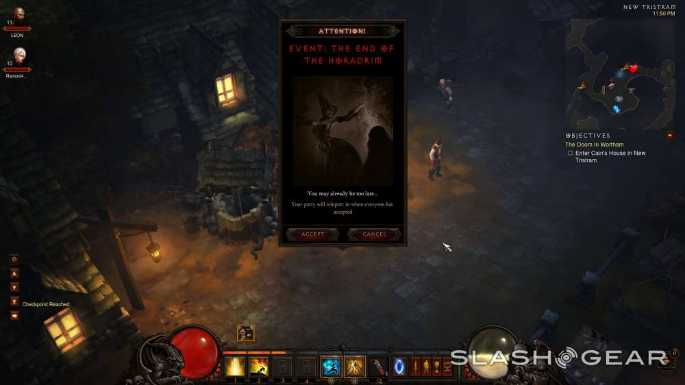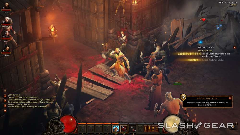 Once you find your way down a winding path, you come upon an encampment by the name of New Tristram – a place you'll find later on reflects the tiny camp past games revolved around. Characters in this camp provide you with information on the perils they face, gradually letting you in on the idea that it's not just for them you'll be fighting, it's for the whole world – or realm, if you wish to call it that. Darkness befalls you as you move toward boss beast bosses that would have your head.