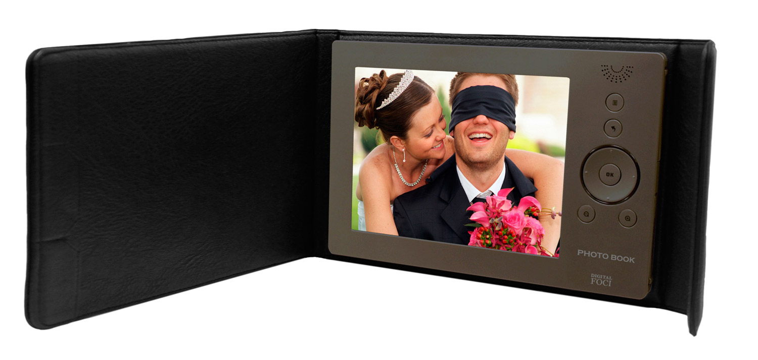 Digital Foci has dressed up a portable multimedia player with a soft leader case and a built-in battery, as a contemporary digital portfolio art book, and readied to showcase at the upcoming PMA 2009. Dubbed "PBK-080 ", the Photo Book features a 8-inch 4:3 SVGA LCD, built-in speakers and a large 4GB built-in memory, along with a host of multimedia card readers to support music, video and digital still image playbacks.