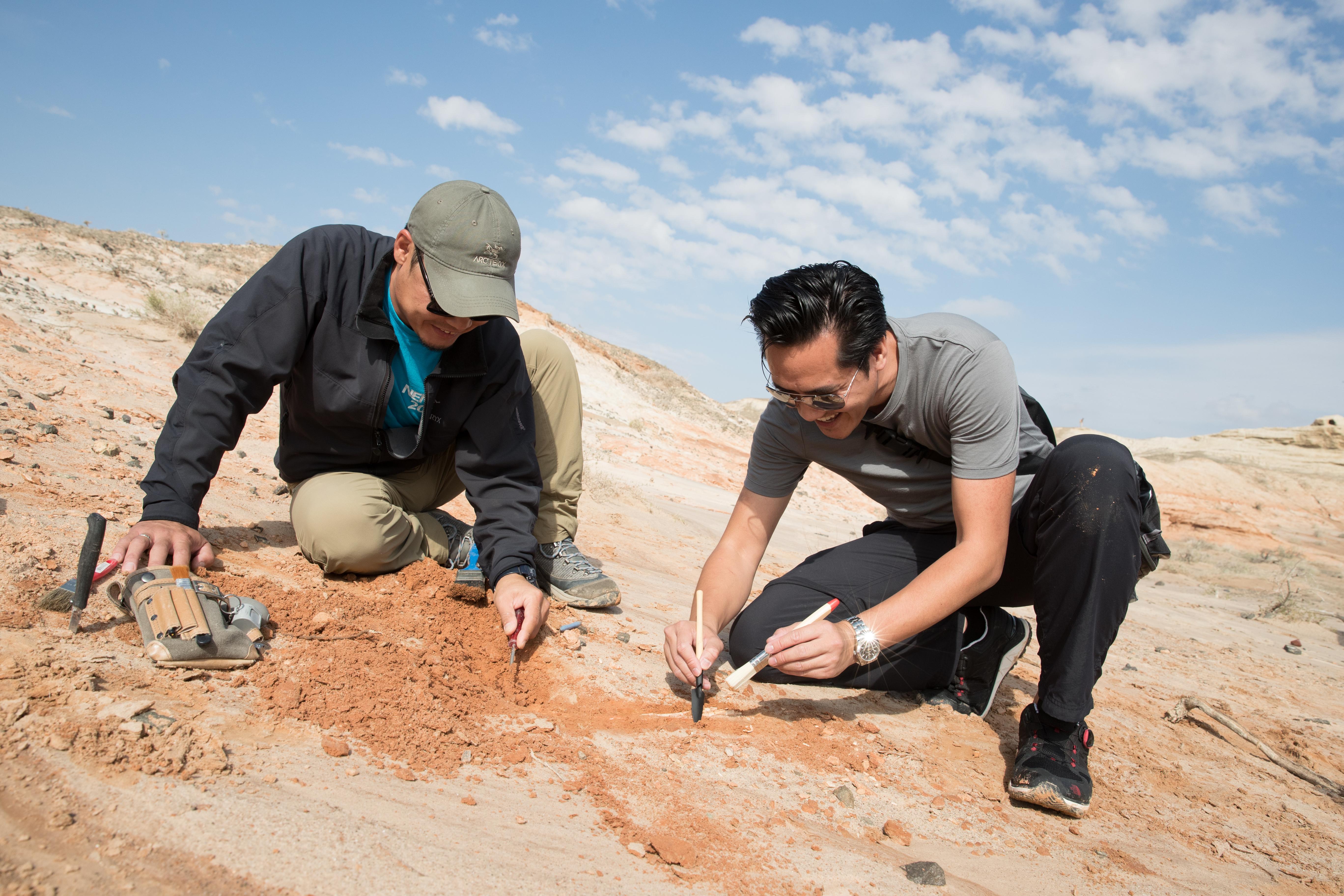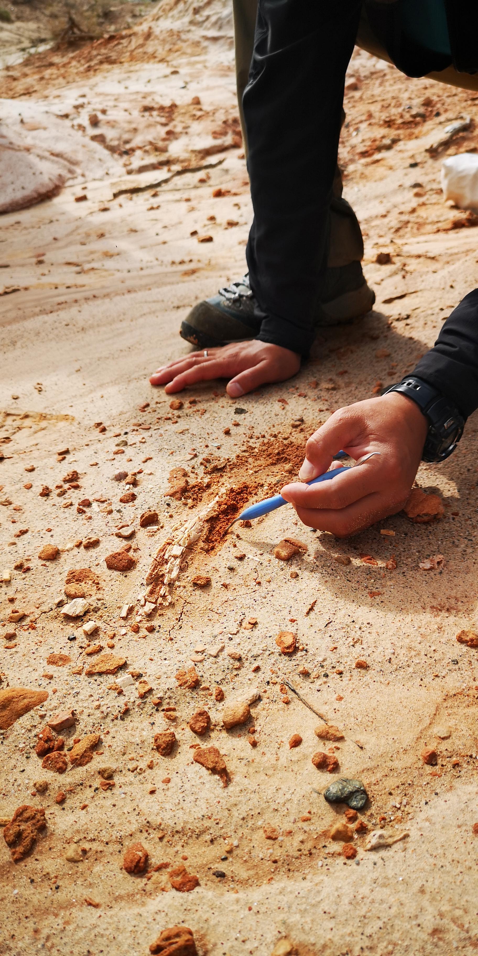 Using this new technology, the team was able to analyze an enormous amount of data collected from satellite and drone imagery. This allowed us to pinpoint high probability locations for fossilization, based on previous geological and sedimentary markers. What the drones don't have are tiny shovels, and so that's when it would be our job to hop aboard Infiniti's SUVs and go find new fossils. This combination of satellite and drone imaging, together with the expertise of paleontologists, has never been done before.
