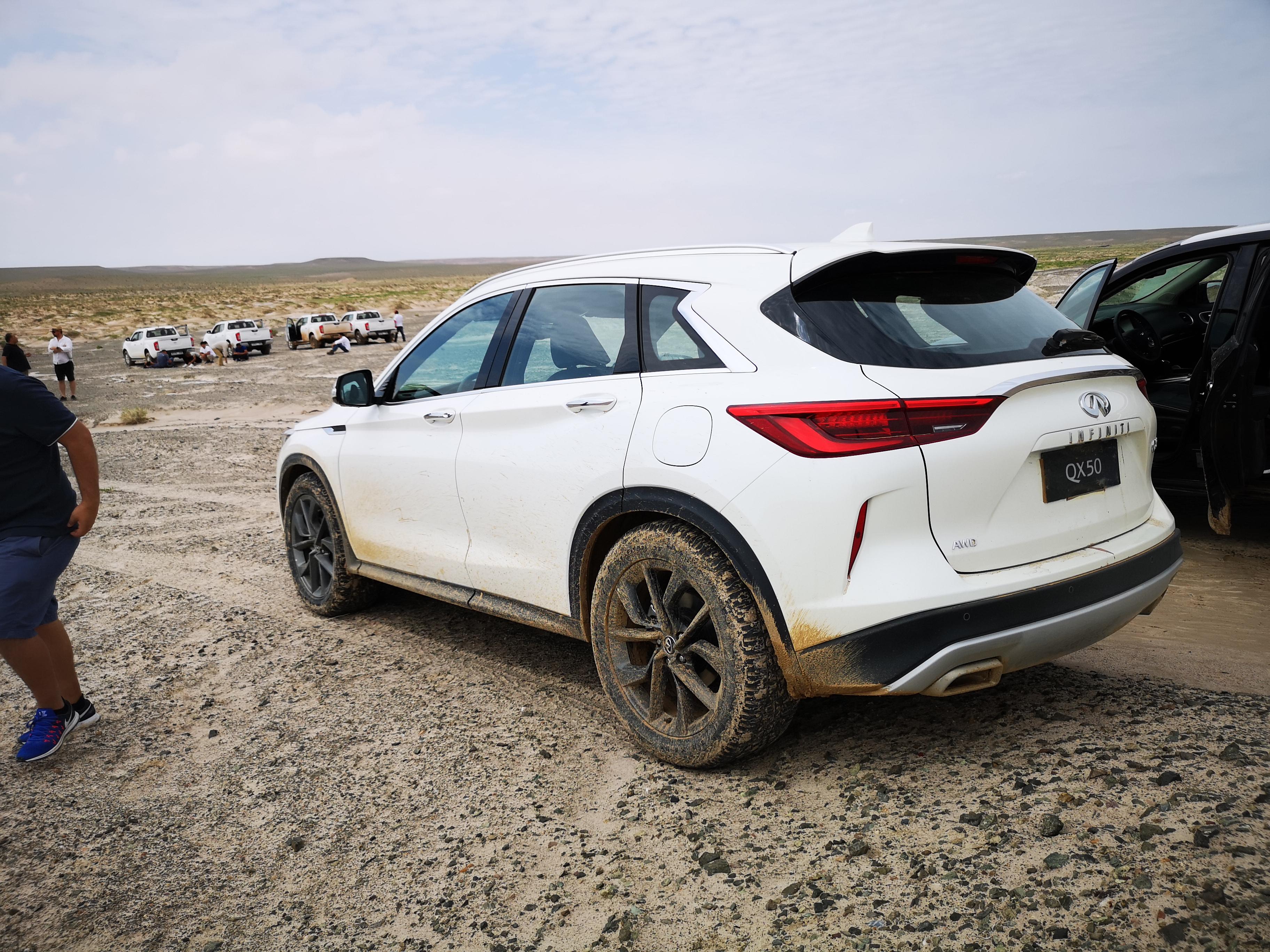 In all honesty, the 2019 Infiniti QX50 is a fish out of water in the Gobi Desert. Nonetheless, it managed to safely navigate over sand and mud ruts, while keeping the entire crew wrapped up in safety and style. Instrumental in that is the world's first, production-ready variable compression turbocharged motor.