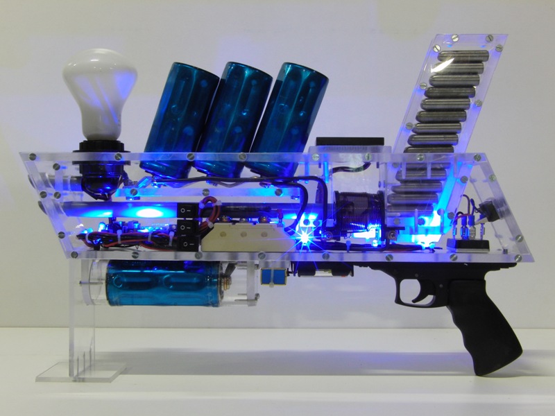 Still, these are just minor points when you have something that looks so damn cool. Incidentally, the bulb at the front isn't for occasional lighting but acts as a charging resistor for the capacitor bank whenever you're juicing up from the mains.