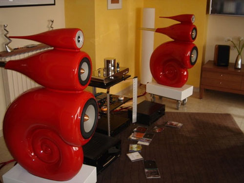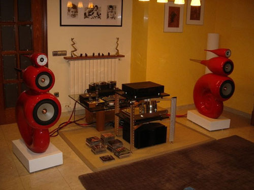 You can see the skeleton of the speakers in the pic gallery below to get an idea how ornate these things are on the inside. The speaker cavities are reinforced with polyester fiber to prevent future expansion. The mid and high range speakers were caved from wood in a lathe machine. The pedestals of the speakers are made from concrete with lead pellets inside to prevent vibration.