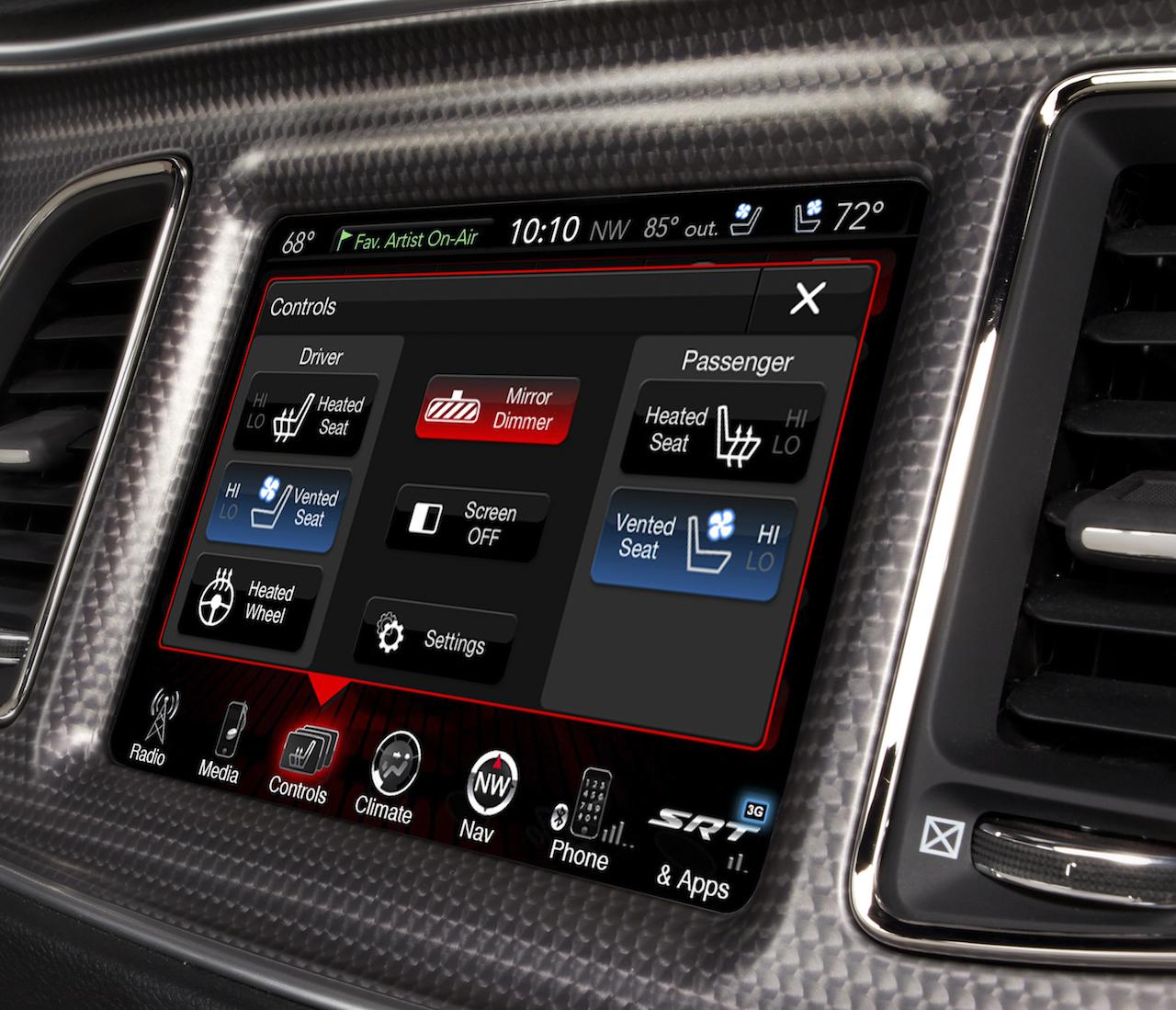 Both versions have Dodge's new Drive Modes system, which includes four different settings that adjust horsepower, shift speed, paddle shifter performance, traction, suspension, and – in the case of the Challenger SRT – steering reaction. As well as the Default mode, there are Track and Sport, in addition to a Custom memory slot in which the driver can save their own choice of settings.