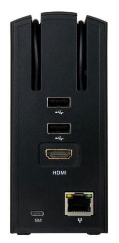 The docking station adds three USB ports and an Ethernet jack. That Ethernet jack is important if you want to use the dock in an area of a home or office where WiFi is sketchy. Connectivity for the stick computer into the dock is via a HDMI port and the dock has connectors for the microUSB port and USB port on the stick computer.