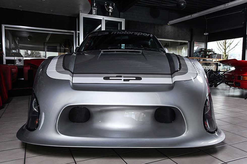 Styling on this car is based on the Porsche 965 that raced in the mid-90s range. That very successful racer was the Zimmermann racing cars and this replica is based on the same color and stripe combination from one of those racers. The upgraded engine makes 450hp.