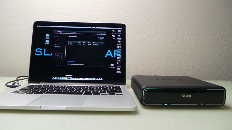 Drobo includes USB 3.0, of course, for broader compatibility, though you'll pay a penalty in speed: almost half of the rates, in fact. Transferring to the same MacBook Pro with Retina display over USB 3.0, we saw 62.71 MB/s, and then 53.1 MB/s sending 5GB files back from the Mini to the Mac.