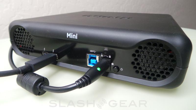 If Thunderbolt is a must-have, then there's LaCie's Little Big Disk, which uses the high-speed port and two preinstalled drives (either HDD or SSD depending on the model). The good-looking external drive isn't inexpensive, however. The HDD-based model has a street price of roughly $319 for 1TB, though that's combining two 500GB drives with no data redundancy; opt for single drive redundancy, and you'll only have 500GB with no room for expansion. The SSD version comes in 512GB or 1TB capacities (street price from around $665), though again you're looking at half that space if you want single-drive redundancy. There's also no other connectivity, unlike the Drobo Mini's USB 3.0, which makes accessing data tricky if you're using one of the (many) computers that lacks Thunderbolt.
