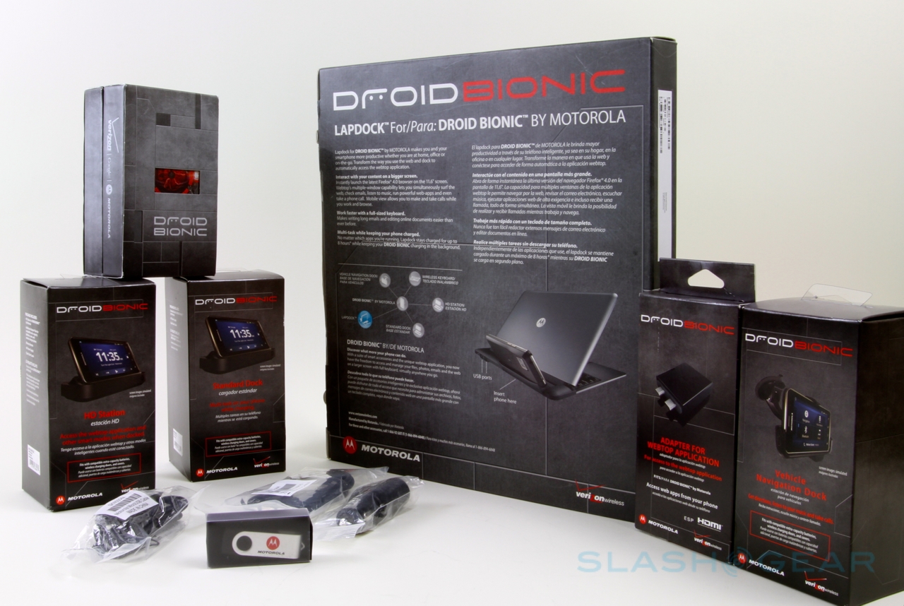 We'll be putting the Verizon DROID BIONIC by Motorola – as well as all the accessories – through its paces for the full SlashGear review, including benchmarks and speed tests, so let us know what questions you have and we'll do our best to answer them! The smartphone will go on sale on Thursday, September 8 priced at $299.99 with a new, two-year agreement, while the Lapdock will be $299.97, the HD Station $99.99 and the Webstation Adapter $29.99.
