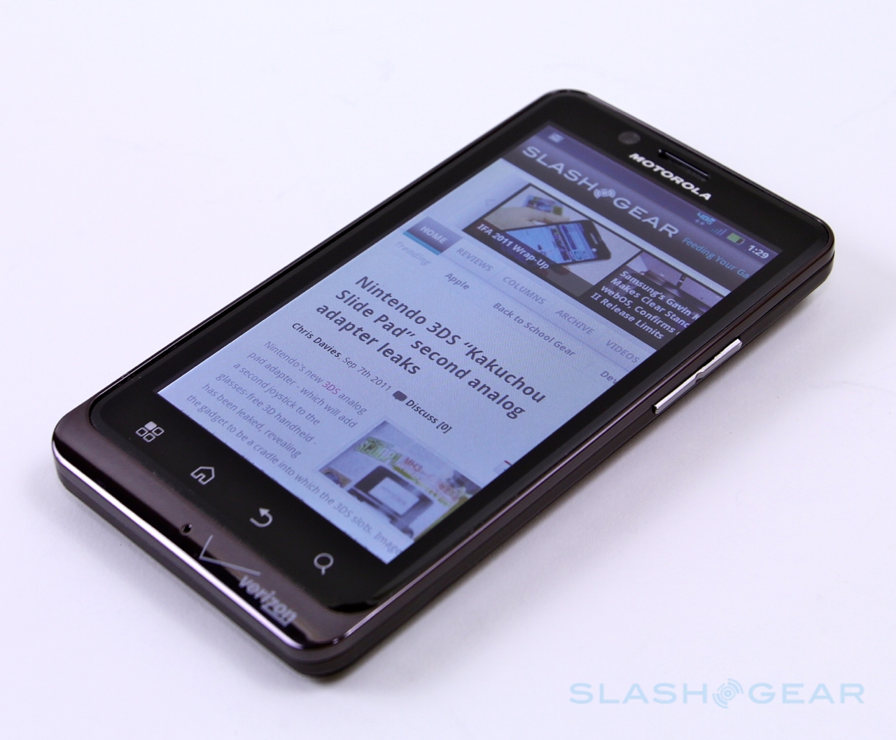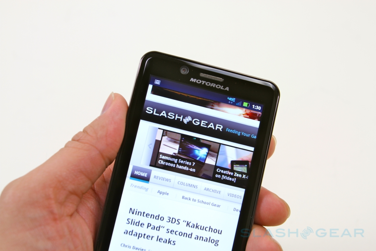 Aesthetically it's in keeping with the squared-off Motorola DROIDs we've seen recently, fronted by a bright and colorful 960 x 540 LCD panel. It's a big display, the same as you'll find on the HTC Sensation 4G for instance, though the extra pixels can leave the on-screen keyboard smaller what with everything Motorola has squeezed into it. 4.5-inches seems like a sweeter size considering our fingers.