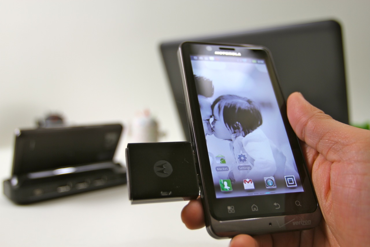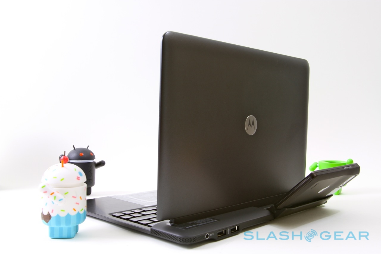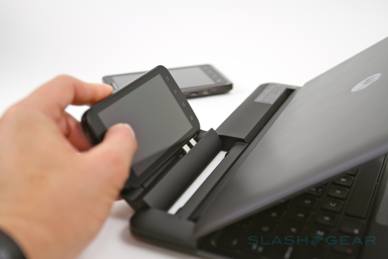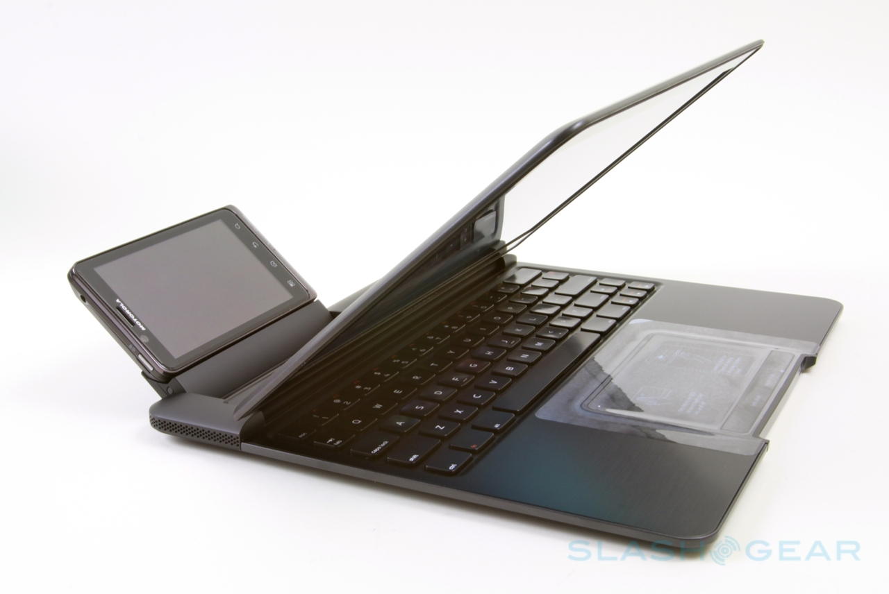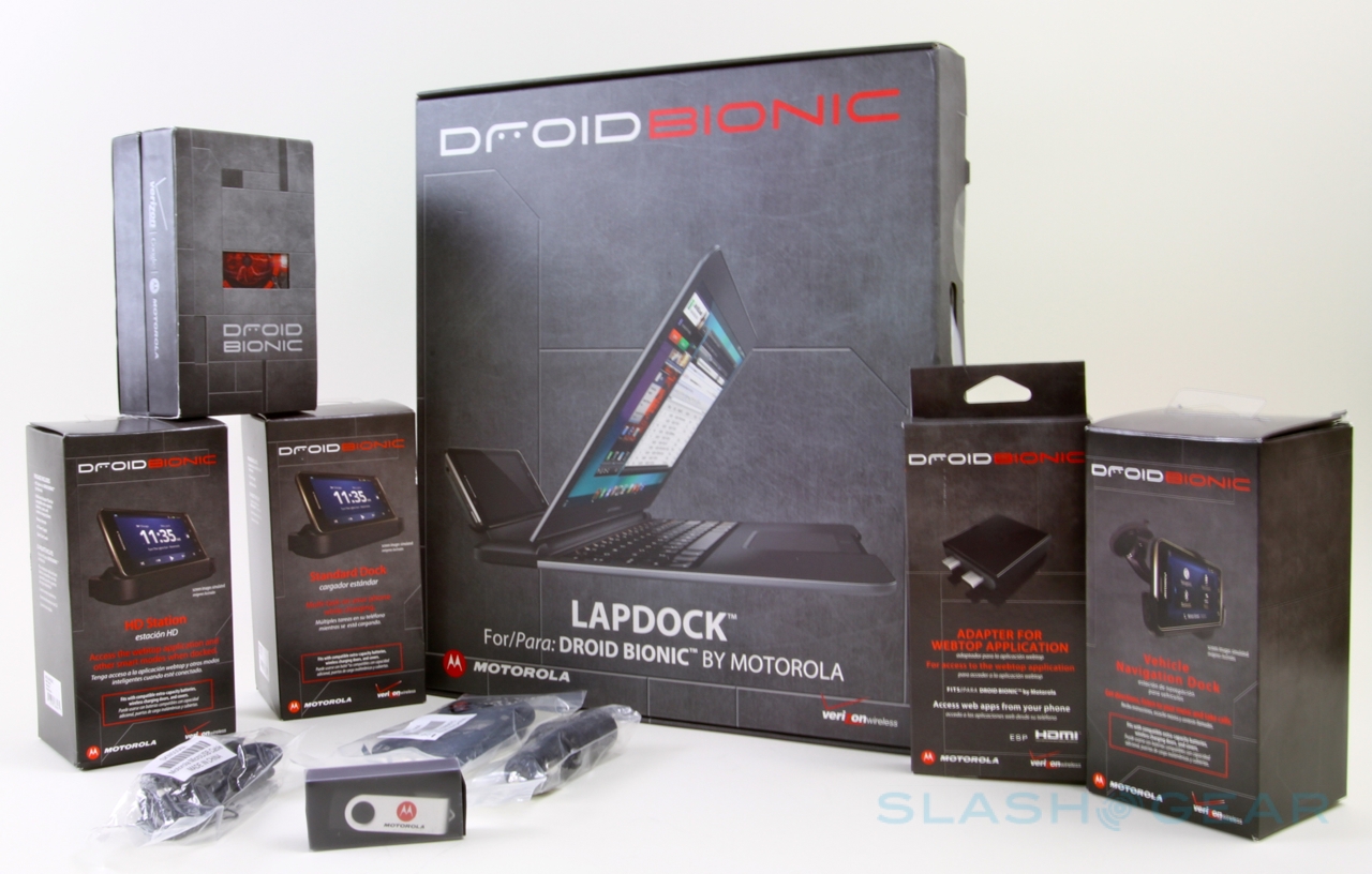 Lapdock: ($299.97) Just as with the original Laptop Dock for the Motorola ATRIX, the DROID BIONIC's Lapdock promises to turn your smartphone into a notebook replacement. Unfortunately, if you had the old Laptop Dock, you can't use it with the BIONIC, which is a frustrating decision on Motorola's part. Your money gets you an 11.6-inch, 1,366 x 768 display, battery promising 8hrs of runtime, a full keyboard and a trackpad, though not multitouch gesture support unlike, say, a MacBook Air.
