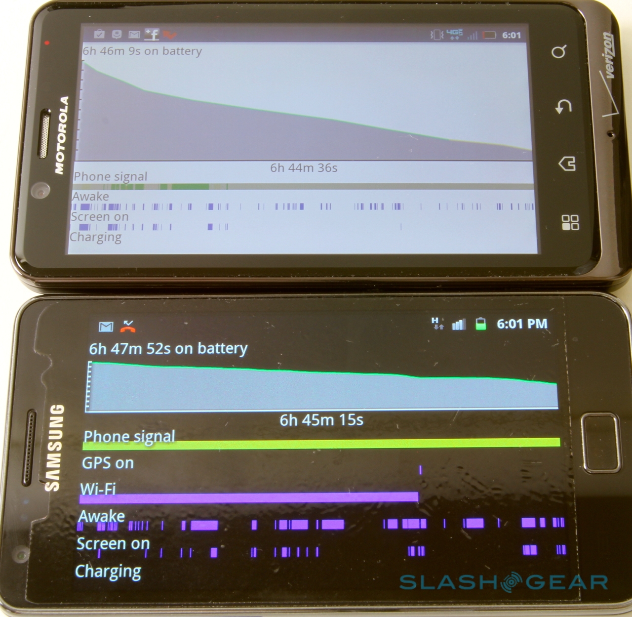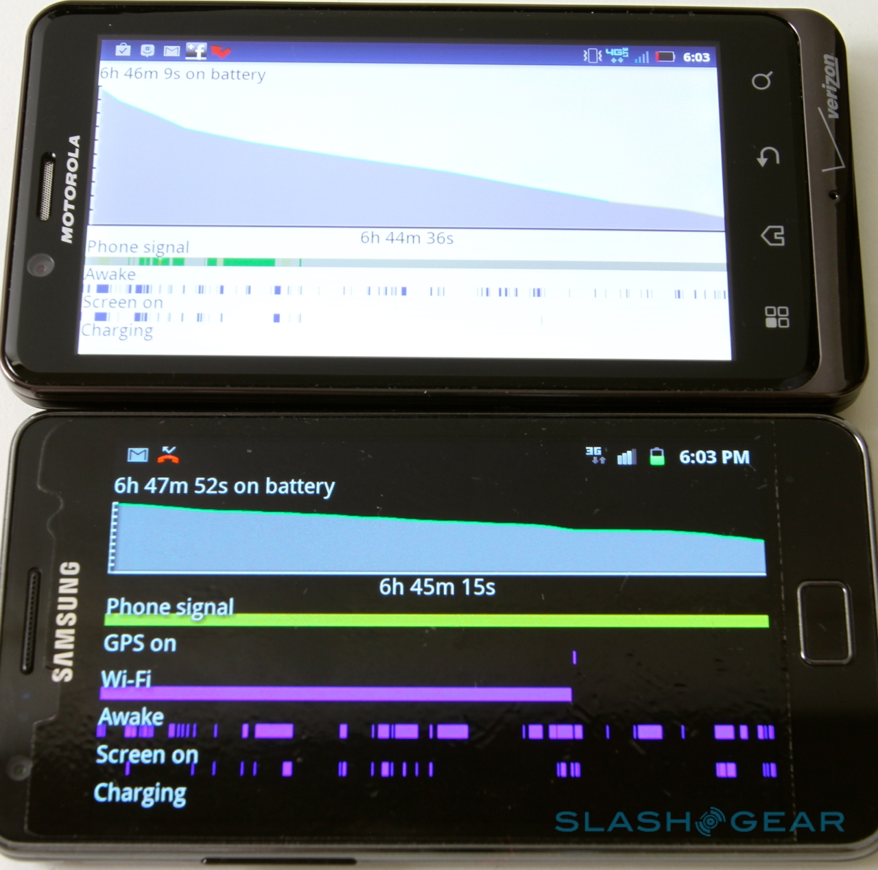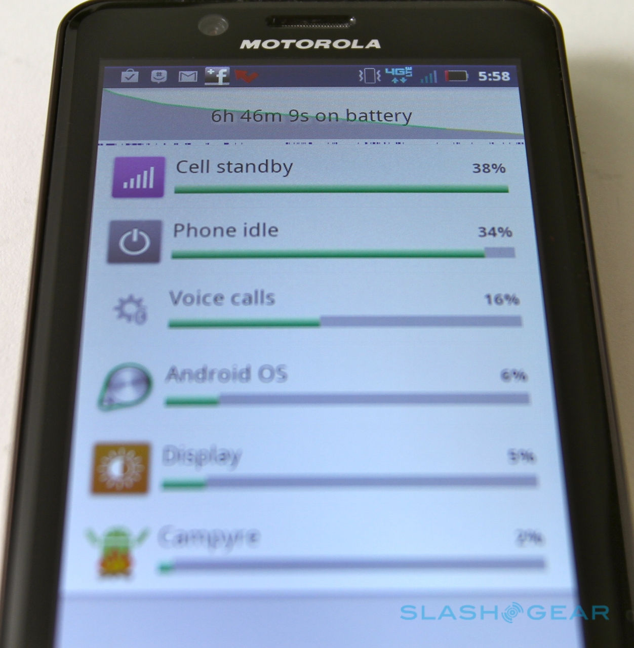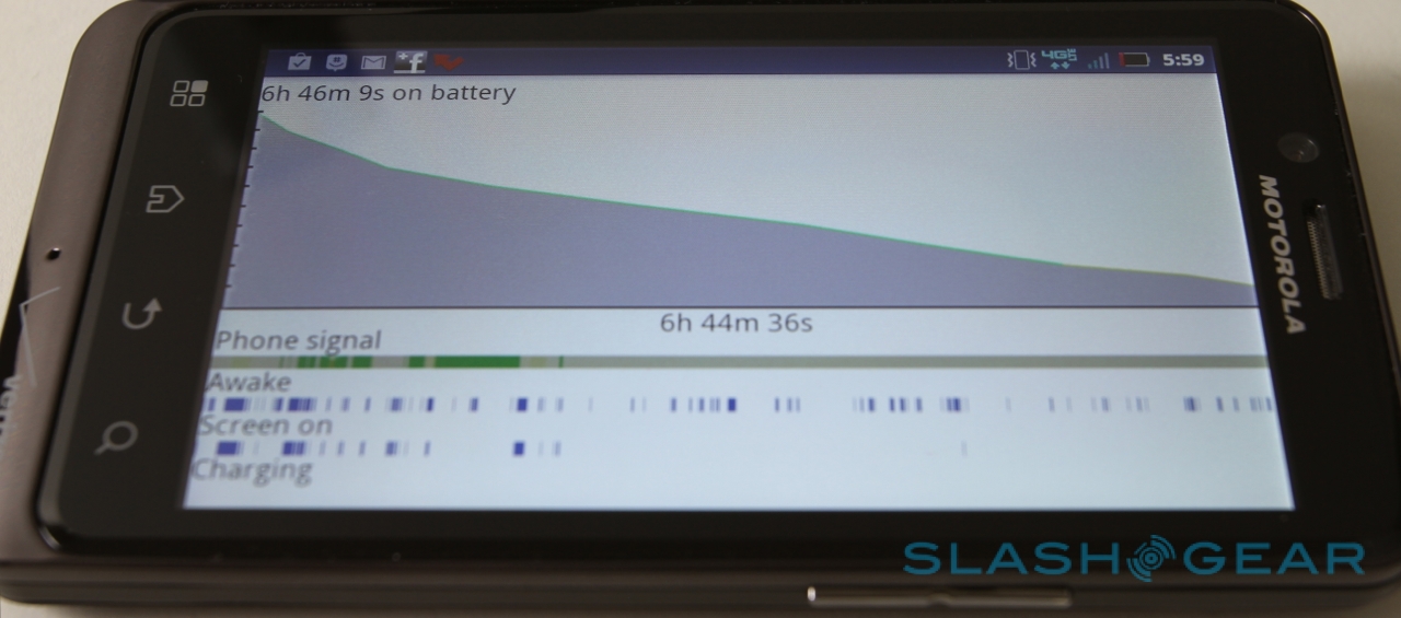 The downside to all this speed and performance is battery life. Motorola has outfitted the BIONIC with a 1,735 mAh battery, but we were still caught short well before the day was through. With minimal use including a few phone calls and some IM, and when in a 4G area, we squeezed just over 6 hours and 45 minutes out of the phone. In contrast, a 3G-only GSM Galaxy S II still had roughly half its battery life left at the same point in the day, even though we'd actually used the Samsung more. Turn on the BIONIC's mobile hotspot app, and things go downhill even more quickly. Motorola offers an extended battery for the phone, though you sacrifice style for extra longevity.