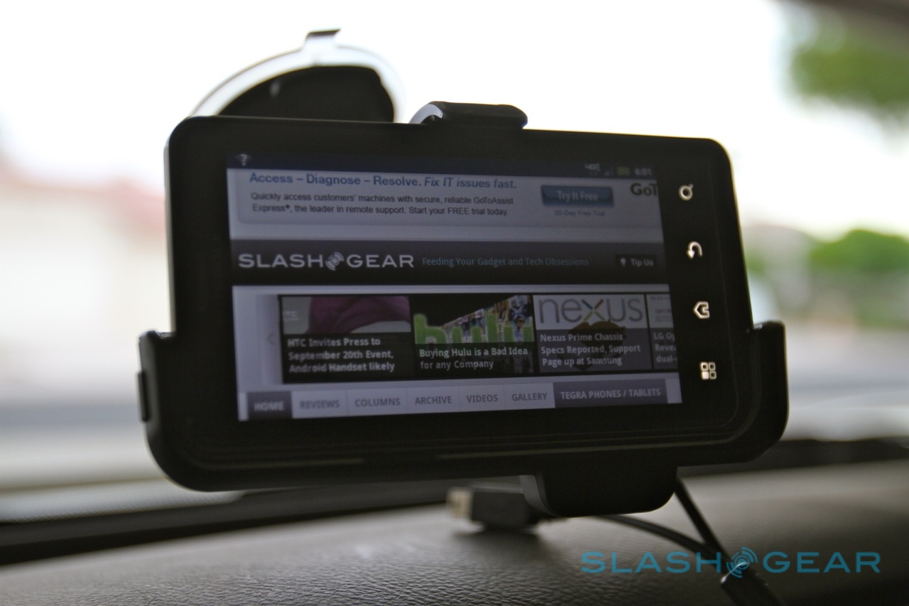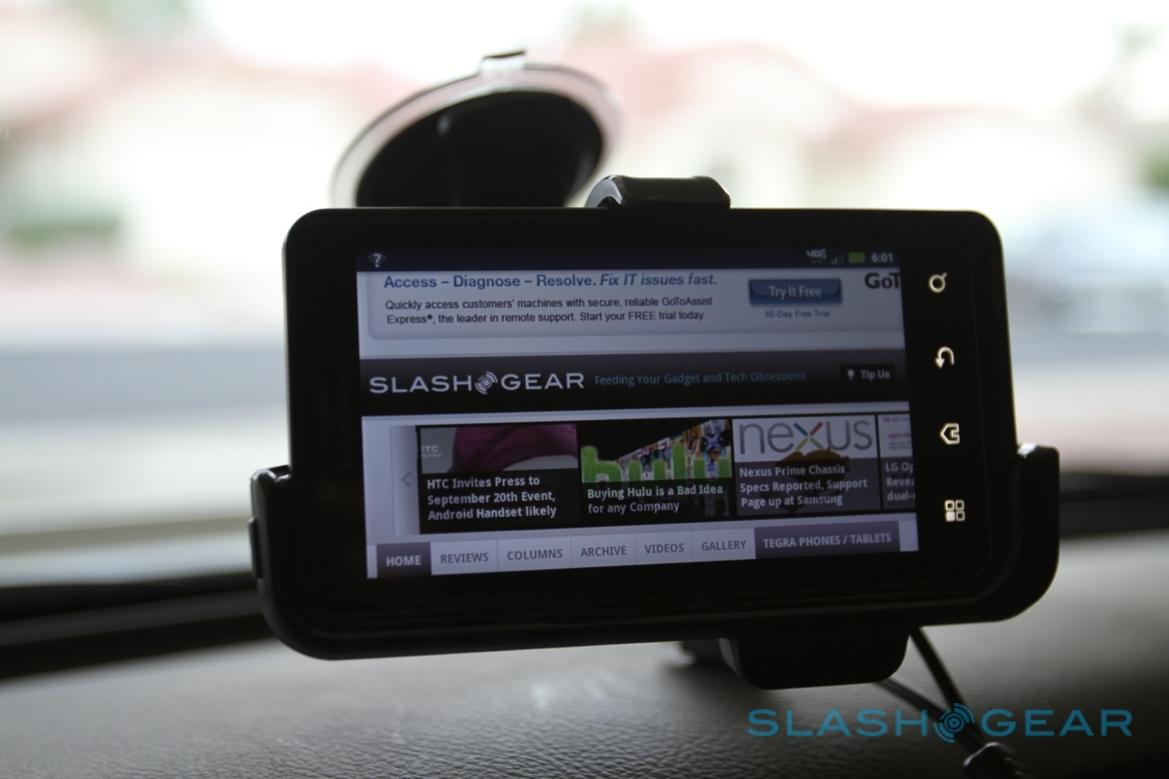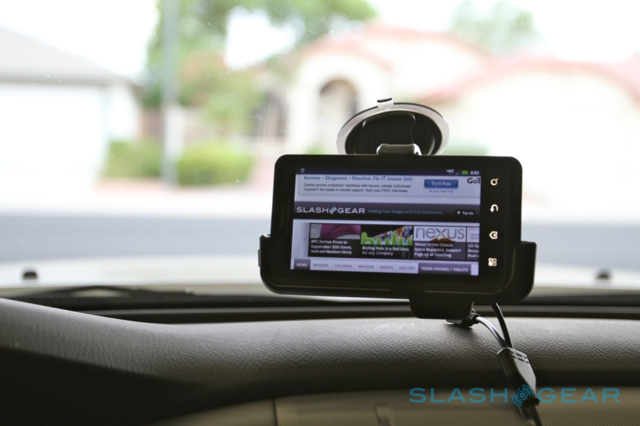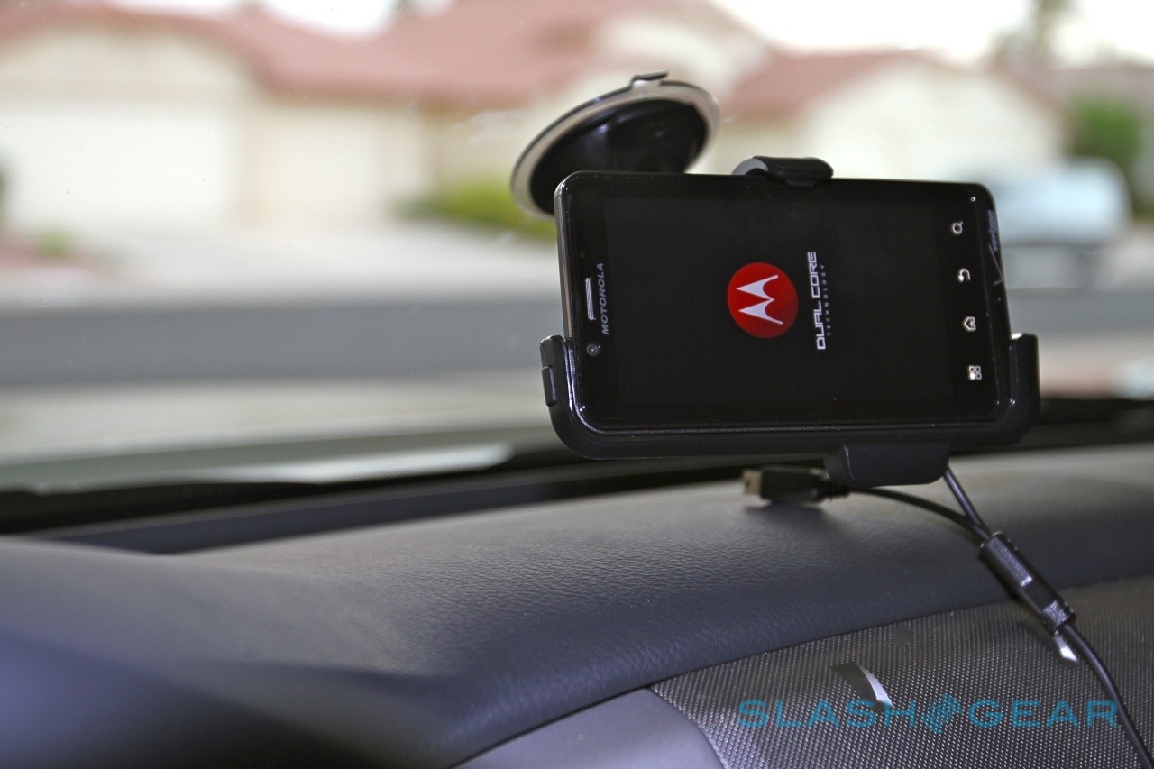 Vehicle Navigation Dock: ($39.99) Google Maps Navigation has replaced dedicated PND units for many, and the official Motorola Vehicle Navigation Dock makes for a straightforward way to mount and charge your BIONIC in the car. It's the usual combination of a suction cup and adjustable cradle, with a pass-through microUSB port for easy charging. Unlike some other cradles we've seen, however, there's no external GPS antenna for better results, and no speaker system to amplify guidance prompts.
