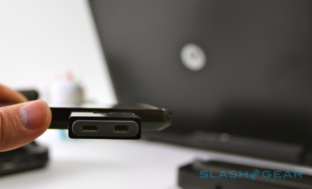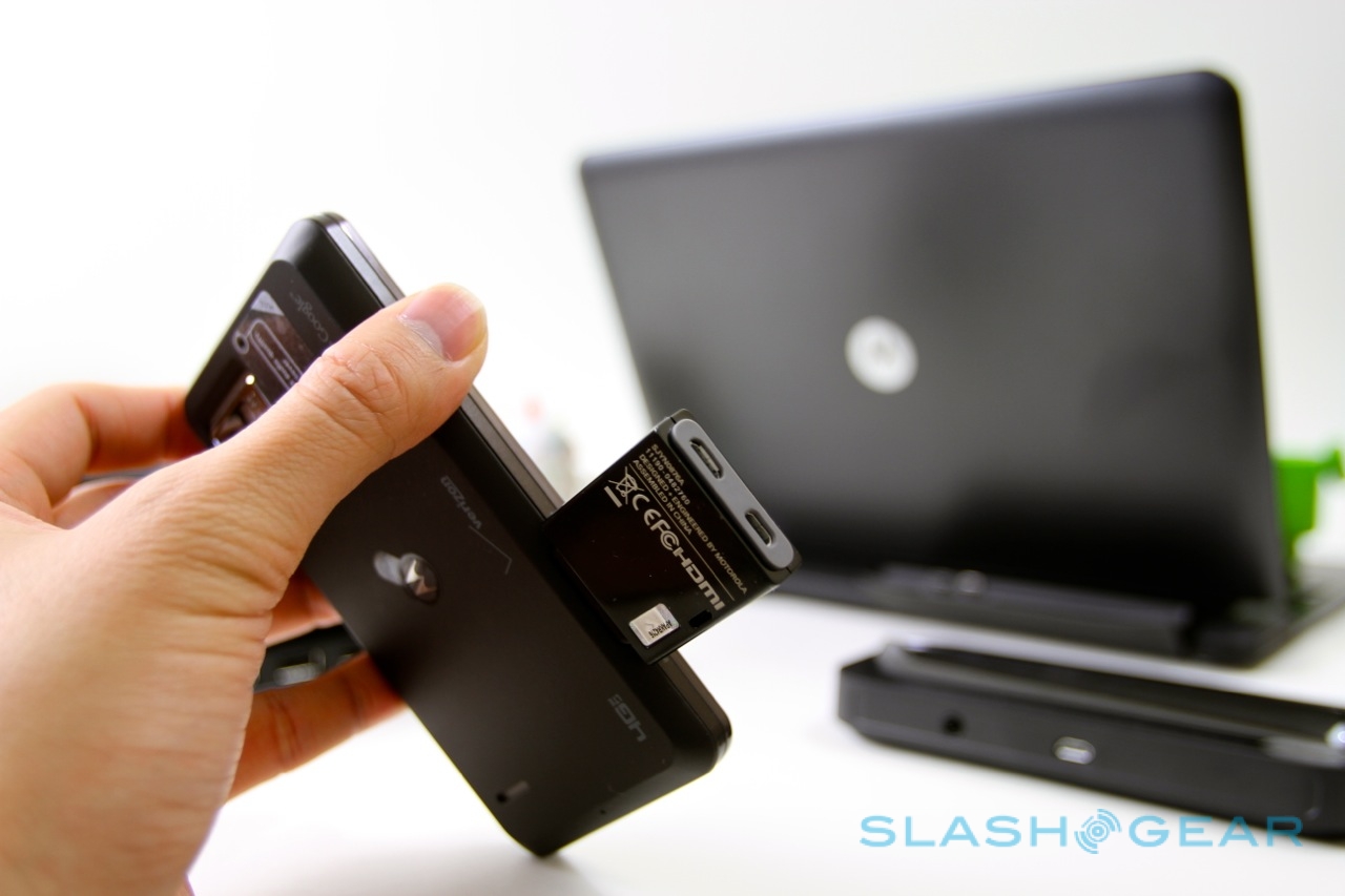 Webtop Adapter: ($29.99) If the Lapdock is too rich for your blood, the Webtop Adapter offers another way into Motorola's Webtop app. Pass-through microUSB and micro HDMI ports allow you to hook up an external display, and you can pair Bluetooth peripherals if the on-screen keyboard gets too limiting. Of course, you'll face the same issues with performance as with the Lapdock.