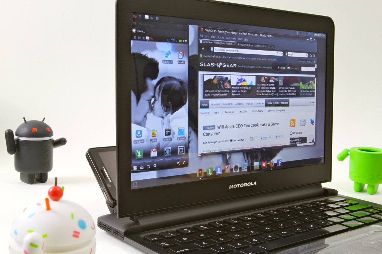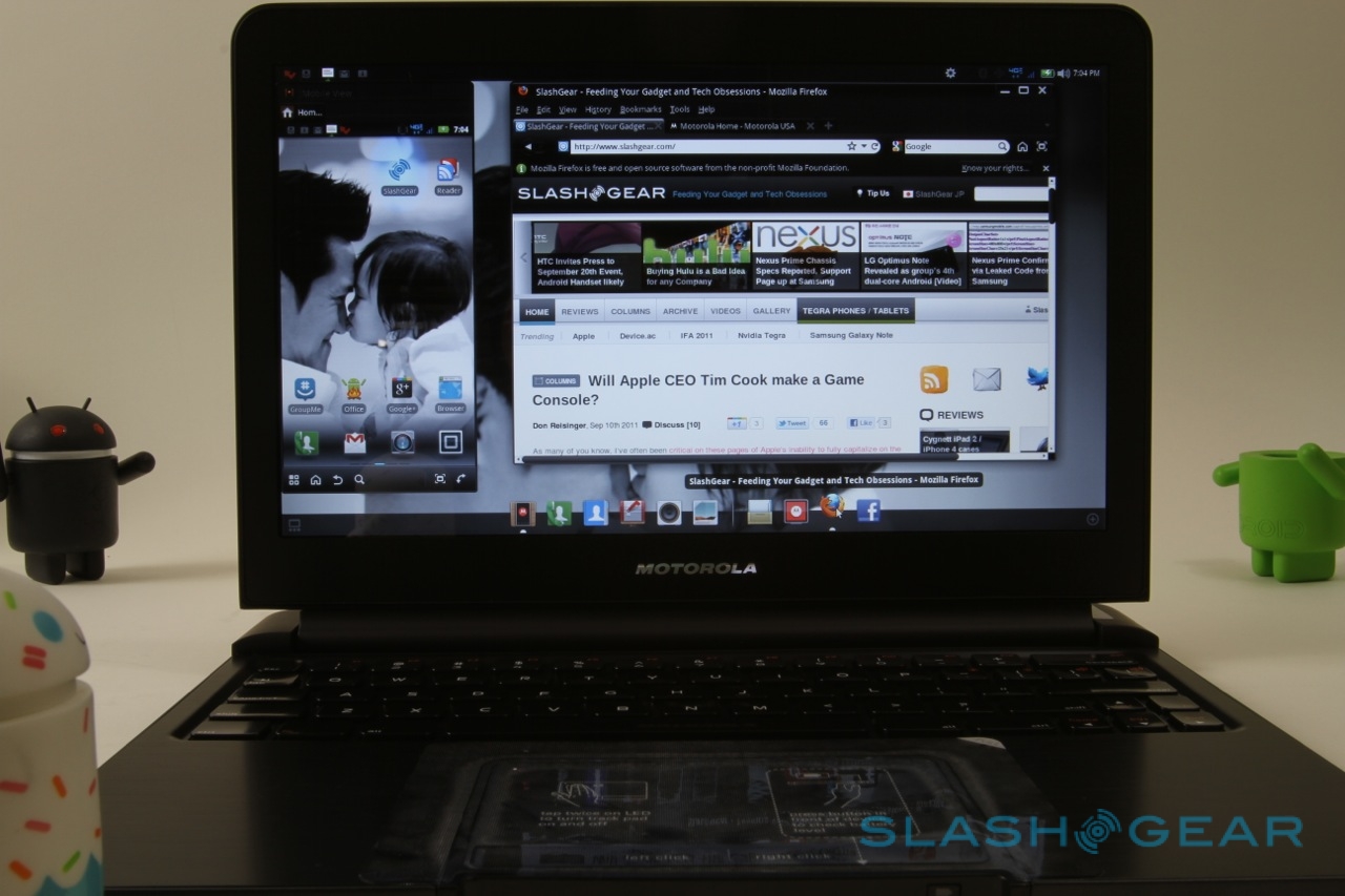 Slot the BIONIC into the bay behind the screen and Motorola's Webtop app automatically boots, allowing you to access Firefox 4 as well as view the Android phone's display – and any apps on it – in a window. Performance is certainly faster than we experienced with the ATRIX, which was painfully slow, but still not a match for a regular notebook. Some mild document editing and maybe a tab or two in the browser is fine, but anything more and the whole thing grinds disappointingly.