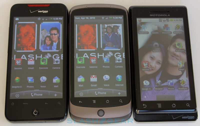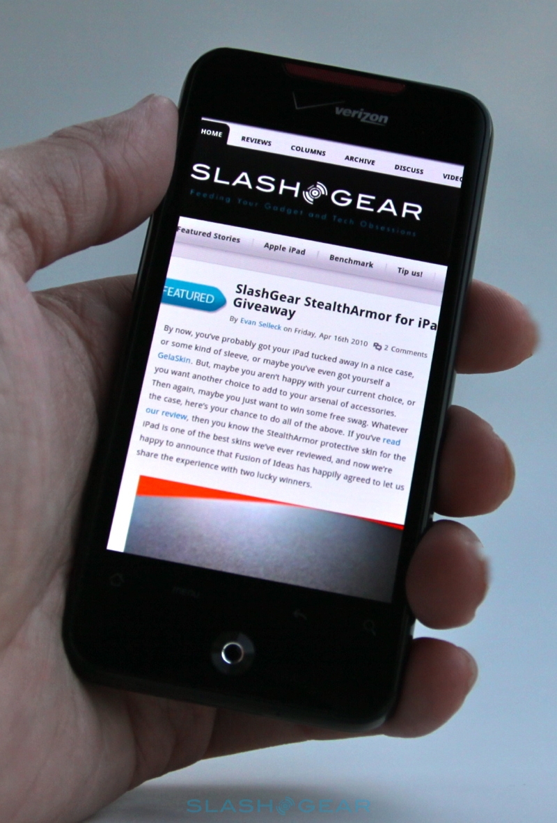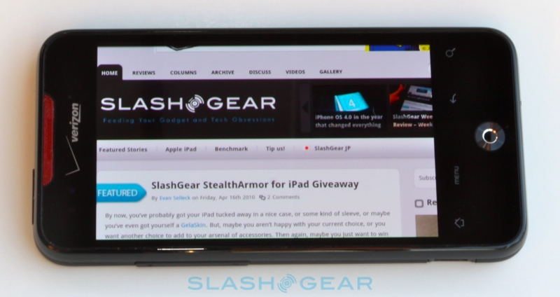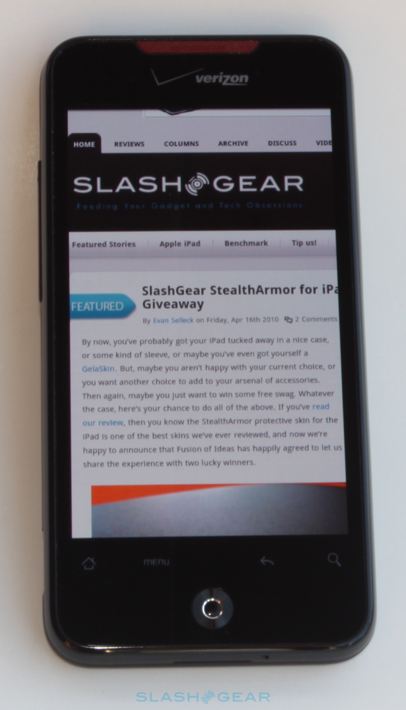 The Droid Incredible's main competitor on Verizon is likely to be the Motorola DROID (review on SlashGear). It's a testament to Motorola's ambitious design that, while the DROID has been on sale for several months now, it's still a viable option among newer devices. Like the Incredible it has a 3.7-inch display (running at the slightly higher 854 x 480 resolution) but the Motorola uses a more traditional LCD panel than HTC's currently favored OLED screens. Although the latter is arguably more power efficient, the DROID's display is in our experience just as bright and color rich as that on the Droid Incredible; it also has the benefit of being more usable (at lower brightness settings) outdoors.