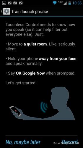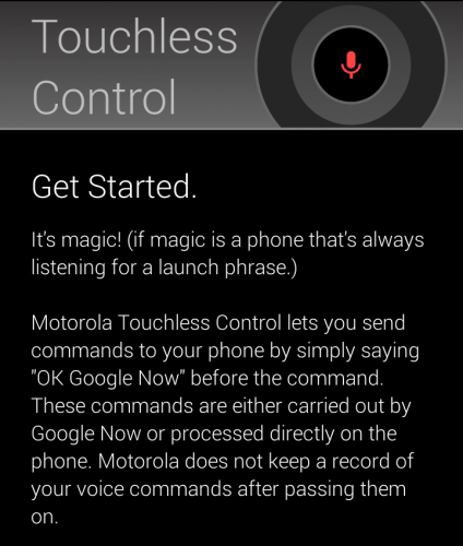 The DROID Maxx works with the "OK Google Now" hands-free assistant feature that's presented on the rest of this most recent Motorola smartphone family as well. You'll have to activate it in your settings – and you'll be prompted to do so from the first time you open your smartphone with a note that makes clear that you don't have to, but you've certainly got the ability to make it so.