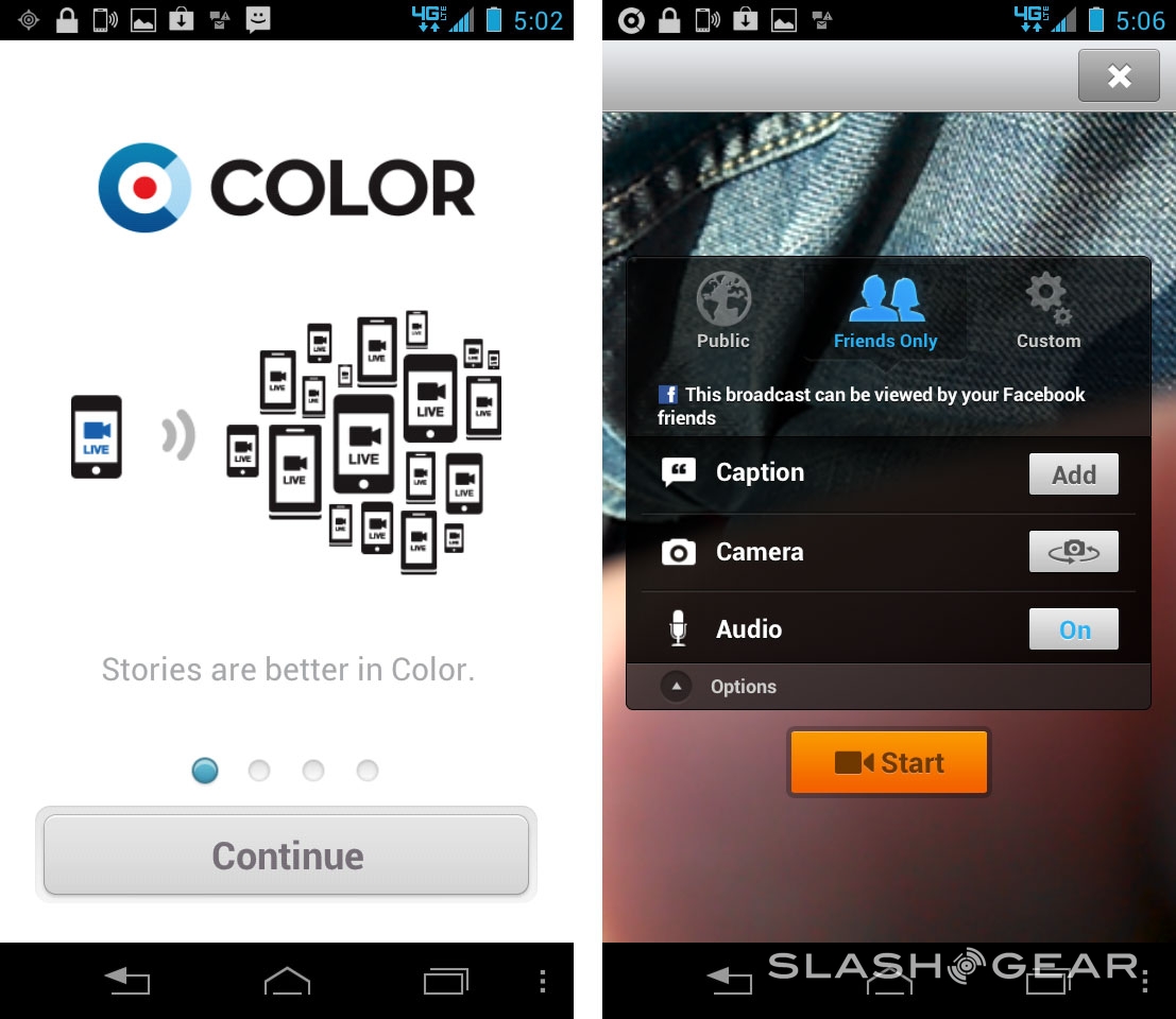 You've got a "Verizon 4G LTE Edition" of Color here, this app being a social networking connection to photos and videos – including streaming live video via Facebook. Apps like Audible and IMDb as well as NFL Mobile will connect you to media from all directions, Zappos and Slacker Radio and Viewdini also bring you physical product shopping, streaming radio, and video listings. This device also comes with a suite of Amazon apps including Amazon for Amazon.com shopping, Amazon Kindle for ebooks, Amazon MP3, and the Amazon Appstore. What's interesting here is that while previous Amazon-toting Android devices have worked with Bing rather than Google search, this device uses Google and has the Google Play store as well. You get the best of both worlds.