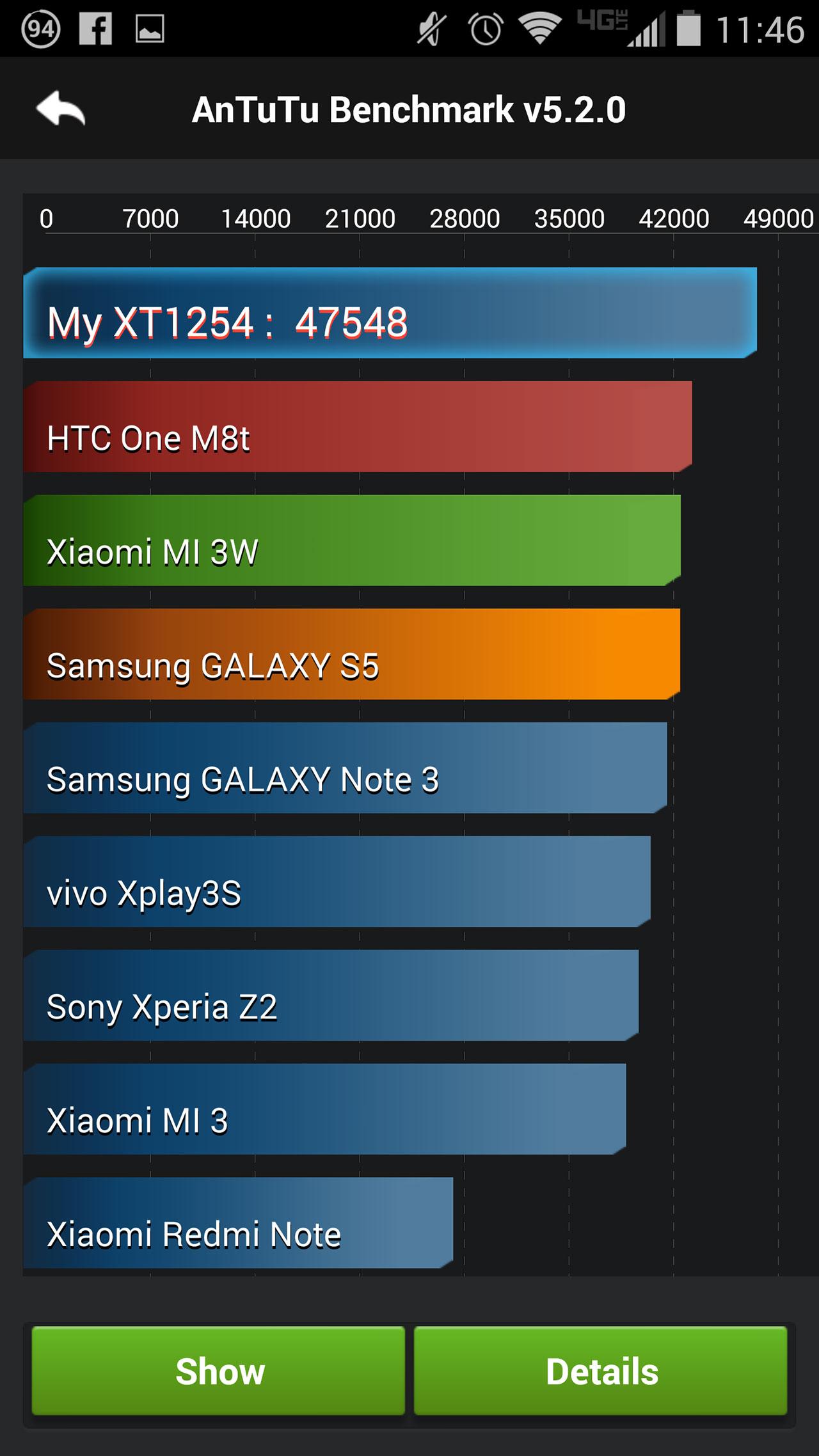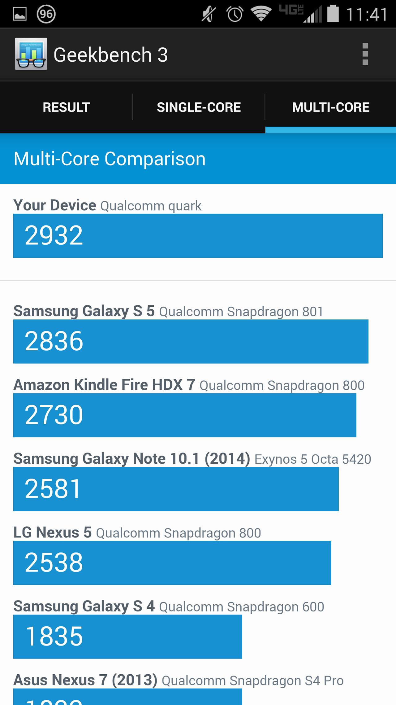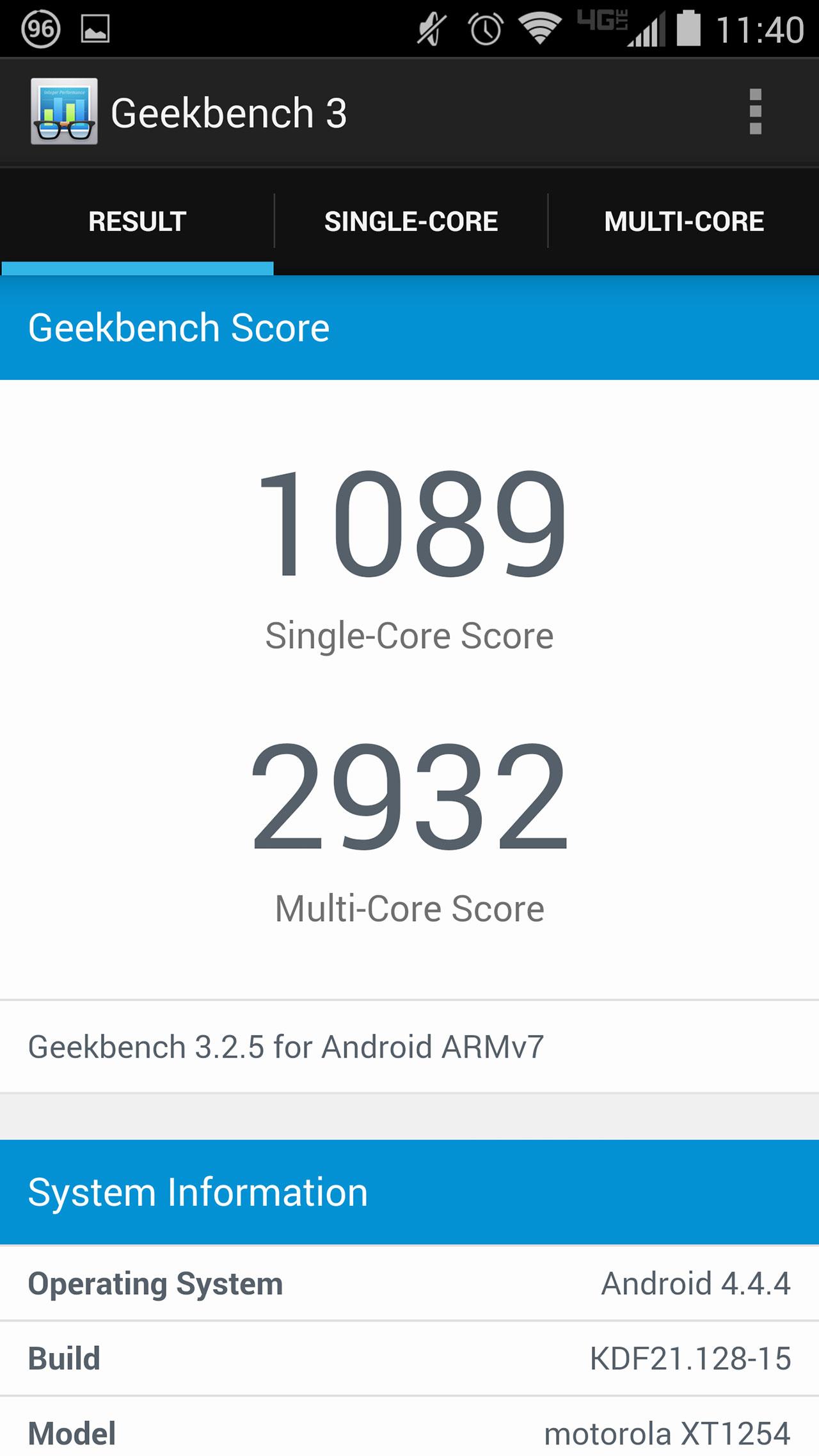 Above you'll see a number of benchmark tests run on the DROID Turbo. Note that we're working with the Qualcomm Snapdragon 805, which means we've got one of the most powerful processors for a smartphone out now – but benchmarks don't mean much else besides how well the phone does on a benchmark.