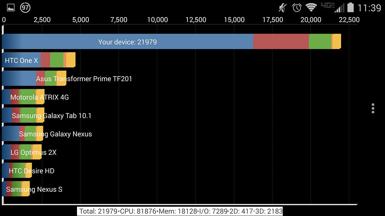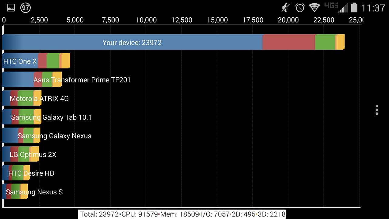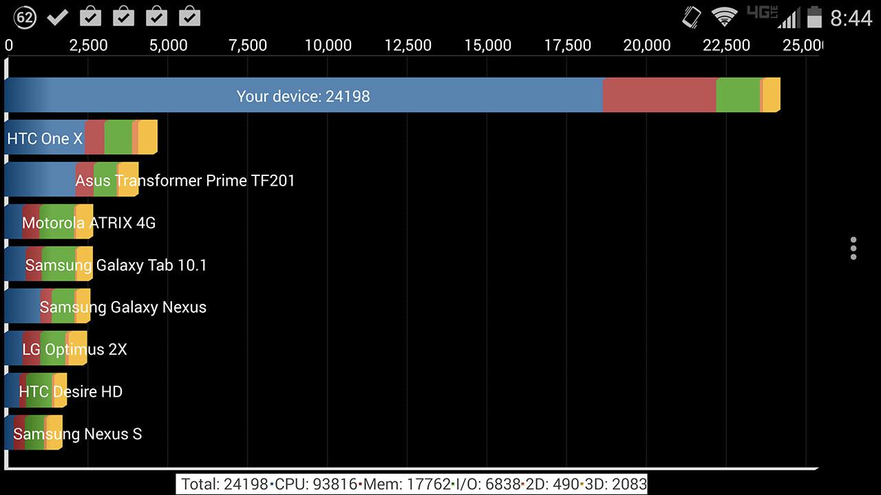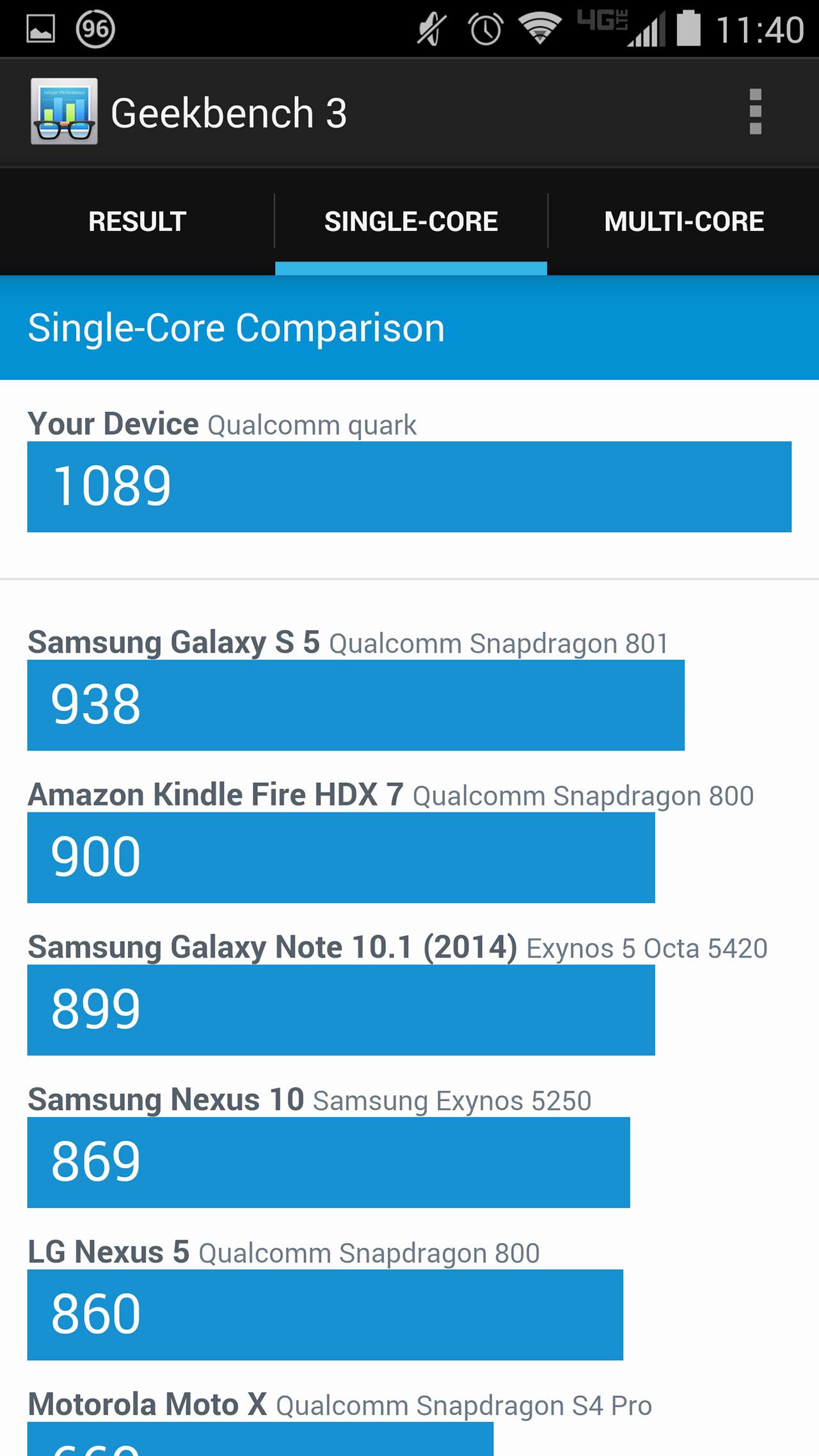 Above you'll see a number of benchmark tests run on the DROID Turbo. Note that we're working with the Qualcomm Snapdragon 805, which means we've got one of the most powerful processors for a smartphone out now – but benchmarks don't mean much else besides how well the phone does on a benchmark.