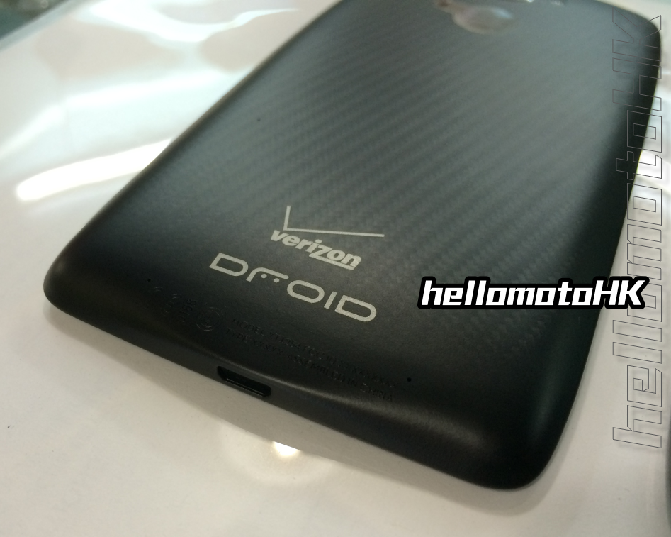 Motorola appears to be coming to Verizon with their newest DROID release in the near future with a device called DROID Turbo. This machine looks extremely similar to the last wave of DROID devices, here coming with a patterned soft plastic back, DROID branding, Verizon branding, a massive Motorola logo, and dual-LED flash alongside a large camera lens.