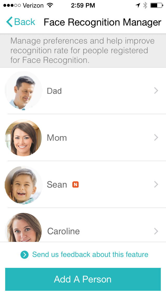 With that, you can also choose to delete footage of certain users. Simplicam can record any sensor trips, but if a particular person is recognized (kids coming home from school, for instance) the footage can be automatically deleted.