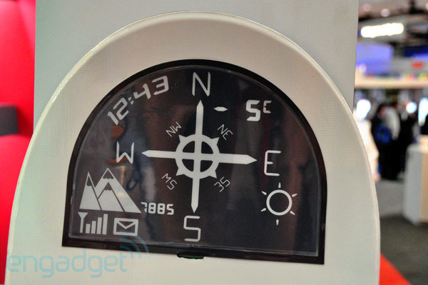 The snowboard display has a compass, clock, weather indicator, and a signal strength indicator. That last bit seems to indicate connectivity with a smartphone or other communications device. As cool as the snowboard is, that isn't all the stuff on display at SID 2011 packing in an E Ink display. There was also a really cool E Ink music holder being shown off and a thermostat with an E ink screen.