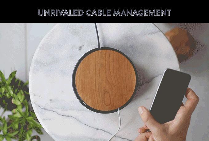 Inside the device can connect up to three USB cables that wind into their own channel inside to eliminate tangling or overlapping that cause messes and make it hard to remove the cables when needed. The cables wind around the Eclipse can be up to eight feet long.