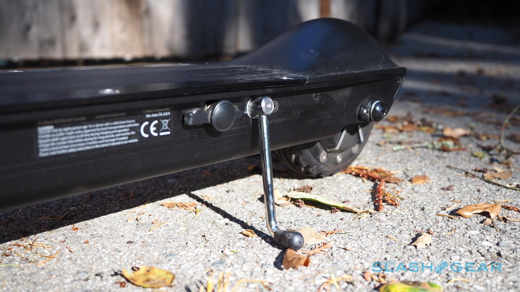 Ride quality aside, it's not hard to find a comfortable position on the scooter. The handlebars adjust for height, while the deck itself is a fairly broad 5.5-inches wide and leaves plenty of space to stand. A kickstand on the side looks dainty, but has no problem holding the scooter upright.