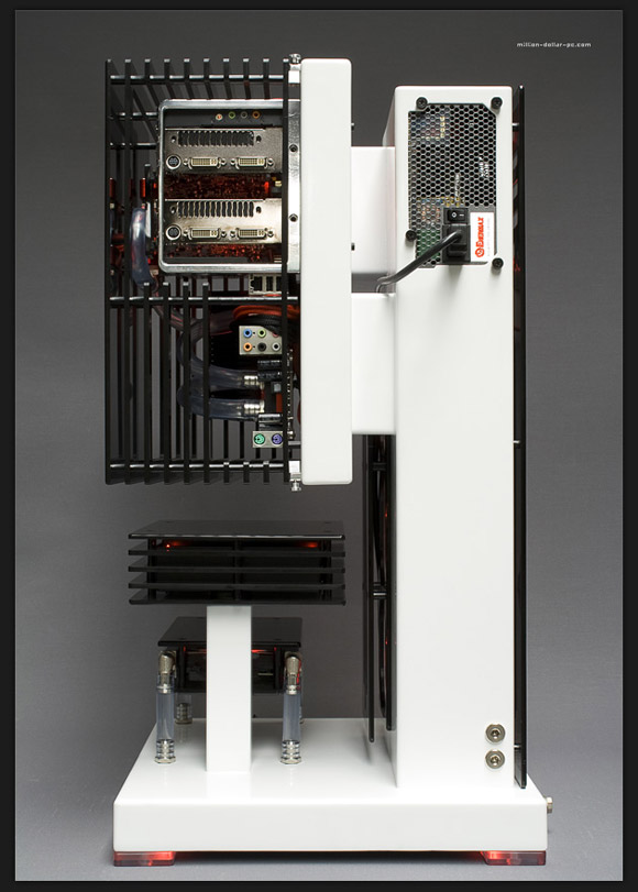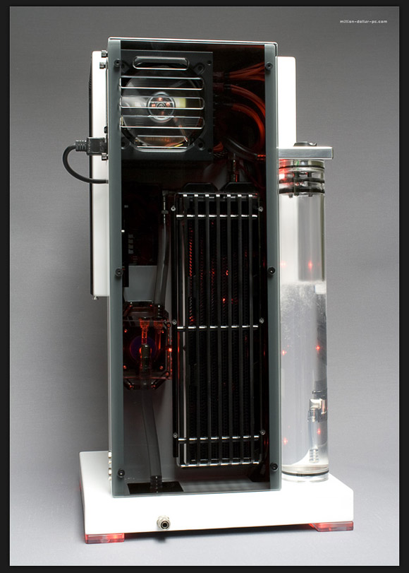 Full hardware specifications of the PC are unknown, but the Edelweiss PC does have a FATAL1TY motherboard, dual graphics cards and a DVD burner. We're assuming that along with the color update, Pius also slotted in some more impressive hardware to take advantage of the heavy-duty watercooling system, too.