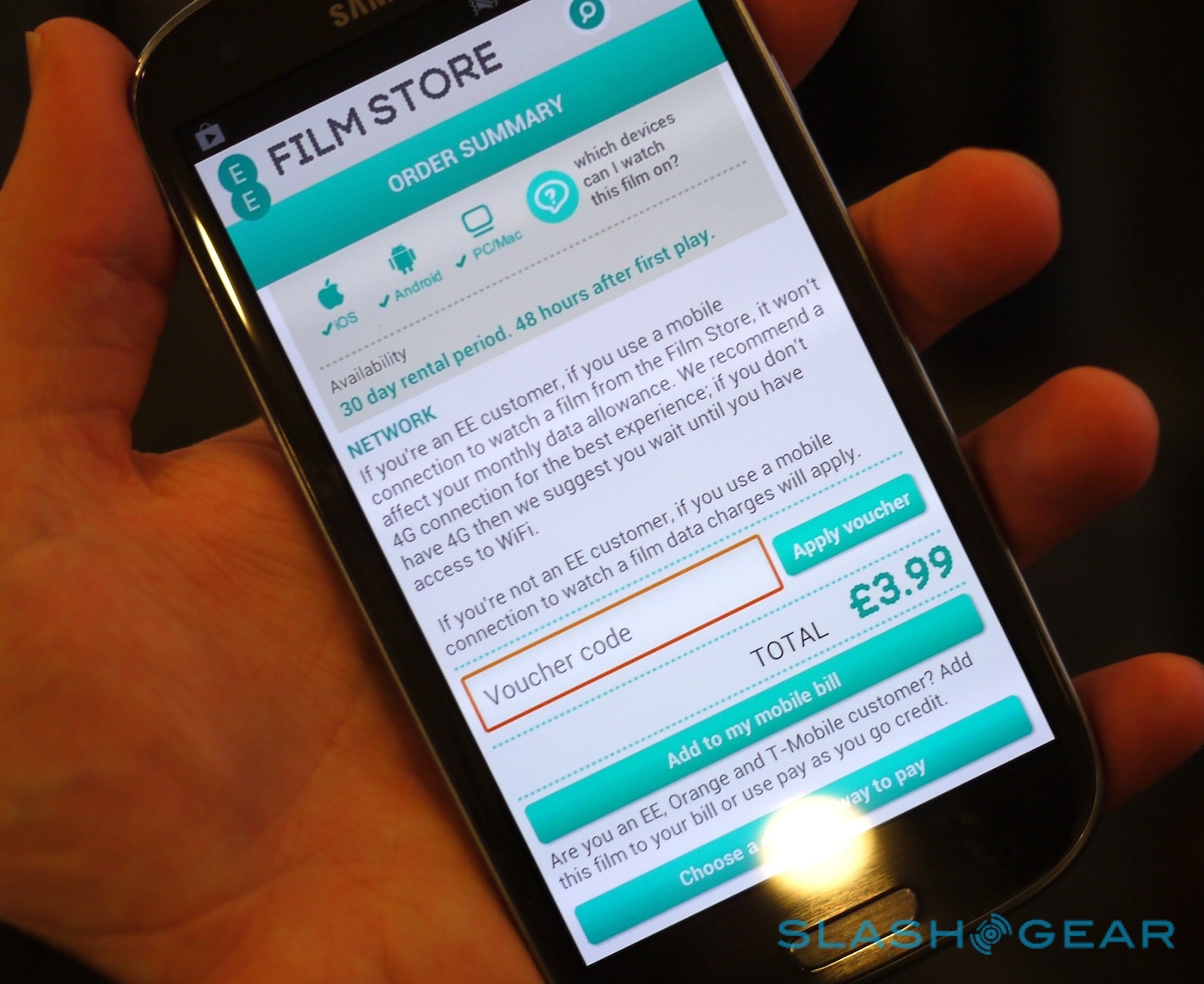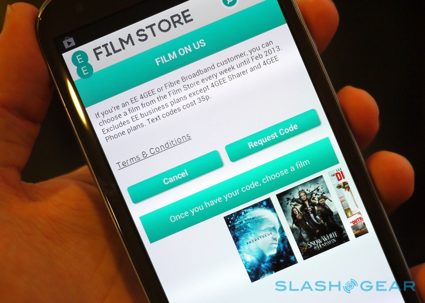 Until the end of February 2013, EE will be offering subscribers one free rental per week, and if they use 4G to download it that won't be counted against their monthly allowance. They'll also get 2-for-1 cinema tickets on Wednesdays, accessed either via text message or the EE Film Store app.