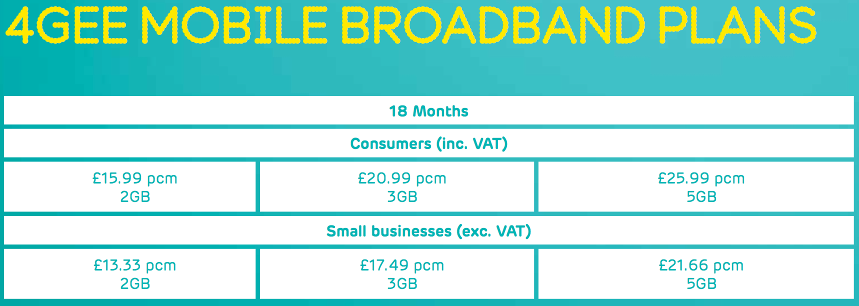 As for mobile broadband, EE will offer both a USB dongle and a mobile hotspot (which supports up to five WiFi-tethered devices), with 18-month plans. For consumers, they kick off at £15.99 for 2GB per month, rising to £20.99 for 3GB, and £25.99 for 5GB: