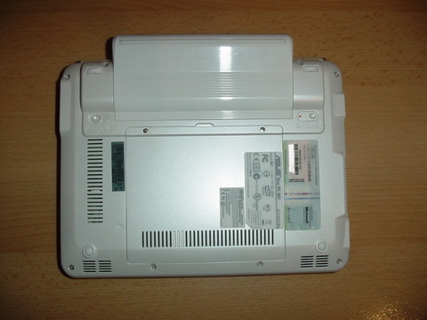 If you're wondering what that unsightly growth is on the back of this Eee PC 901, it's actually the official ASUS extended battery. But before you dismiss it as too cumbersome or, taking the weight of the 901 up to around 1.2kg, too heavy, picture this: 8 to 10 hours of continuous use from a single charge.