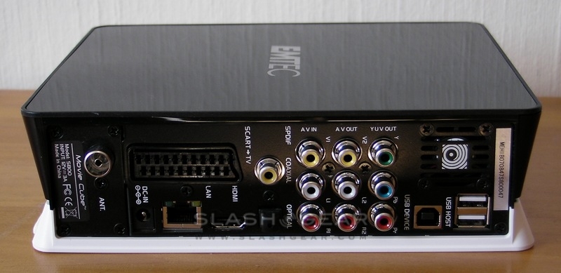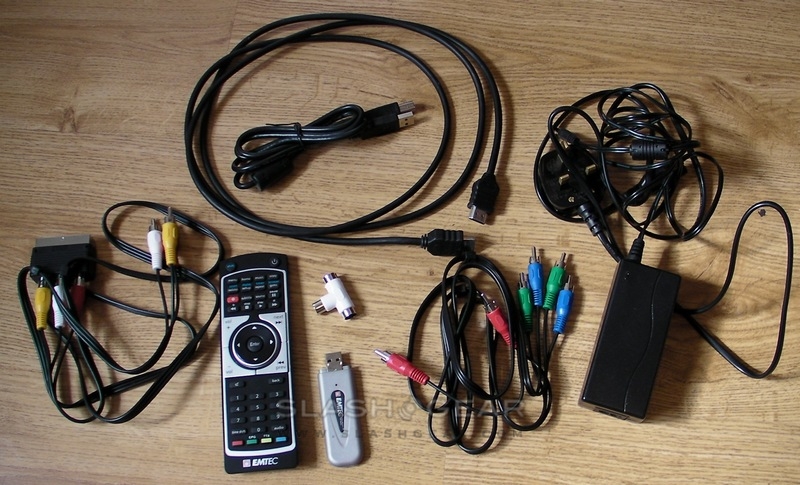 In the box there's a mass of cables, although for many the single HDMI lead will be enough. Nonetheless, Emtec provide a USB (A to B) cable, Y/U/V component cable, composite cable and, in the UK, a SCART adapter. The USA version of the Movie Cube lacks the analog and DVB-T TV tuners; our UK version also included an aerial splitter, though not the appropriate cable to connect the second output to our test TV.