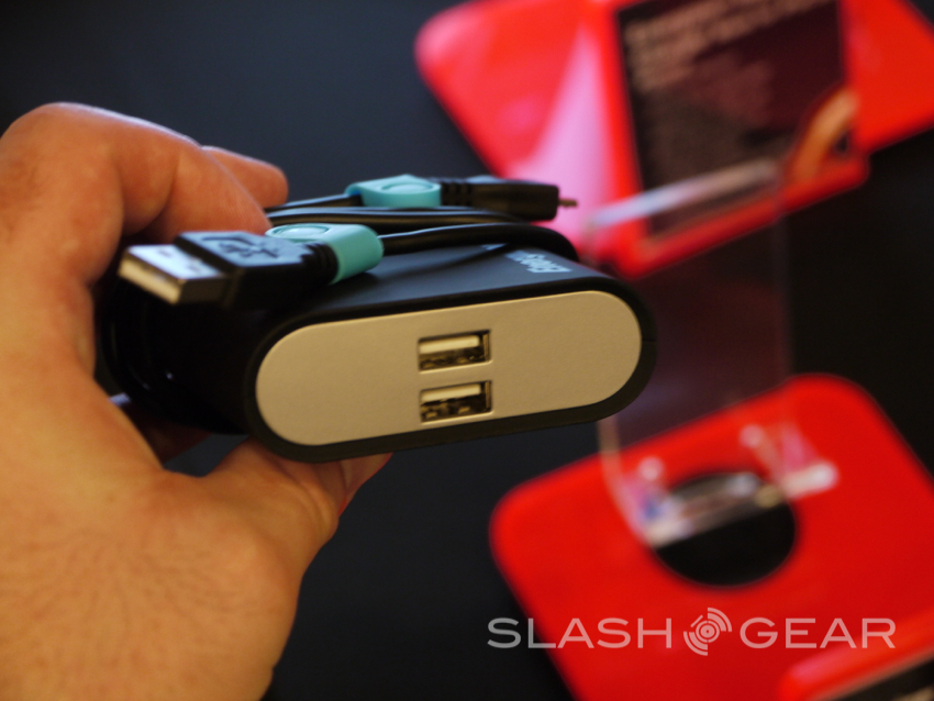 Since we all wish our phones or tablets lasted longer we decided to hunt out a few charger packs while roaming the halls at CTIA 2012. One we came across was the Energizer multi-port charger. What makes this unique is the multiple ports for charging. One for smartphones, and another higher output port for Android tablets or even that shiny new iPad.