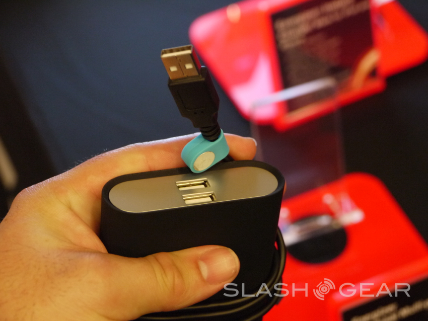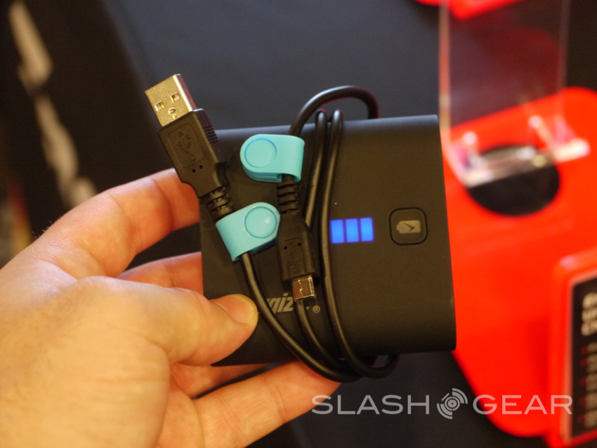 The blue magnetic cable clips shown in the pictures is also a nice touch although makes the device appear more bulky than it really is. They they help keep that cable clutter to a minimum. Again these come in multiple sizes and the 5,000 mAh model shown here will retail starting this month for $75.99 for those interested in a little extra juice for their gadgets.
