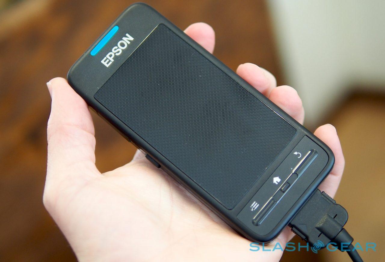 It's a far tighter experience all round, in fact. The production set is solid and sturdy, with none of the flex or wiggle in the eyepieces that the prototype had suffered (admitted after having been dragged around the show circuit for numerous Epson demos). A double-tap on the side of the glasses is now recognized by the motion sensor, toggling the displays on and off.