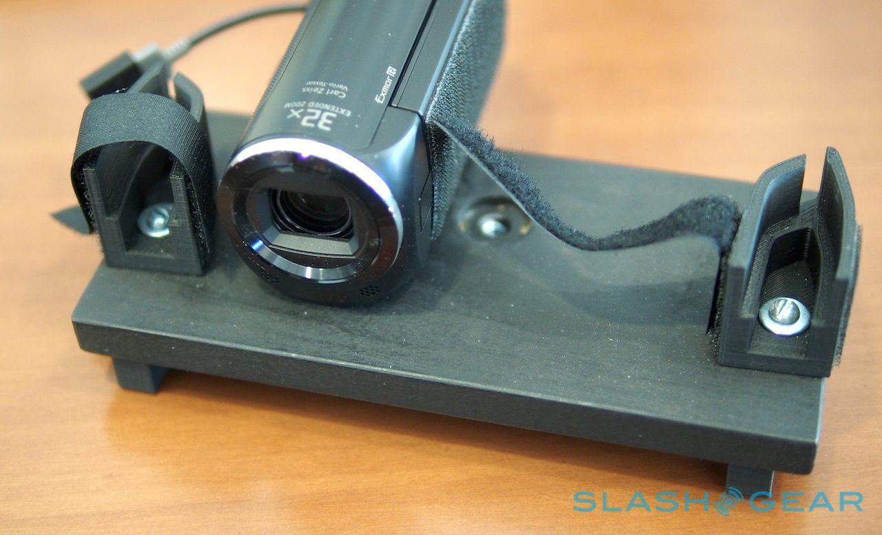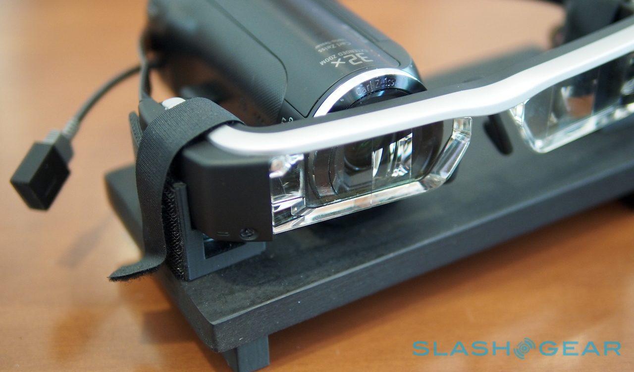 Epson also showed us the answer it had cooked up to one of the lingering issues around demonstrating wearable devices: how, exactly, do you show people what's going on with the display, when it's intended to be worn on your face? The answer is a special, 3D-printed camera rig into which the Moverio BT-200 can slot, and which with a little focus tinkering can capture just what the transparent displays are showing.