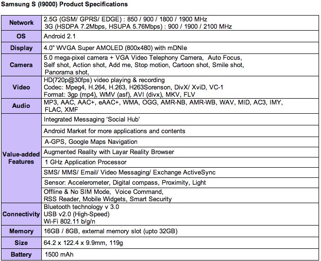 "The Android-powered Samsung Galaxy S will set a new standard for smartphones, and the excitement we've seen from operators and retailers for this device is testament to that," said JK Shin, president and head of the Mobile Communications Business, Samsung Electronics. "The Samsung Galaxy S is the perfect device for people in all corners of the world who want that extra edge; to be more effective, productive, better connected, and in tune with their smart life – both personal and professional – all in a very easy and simple way. We're extremely confident that this device is going to be very successful in every market."