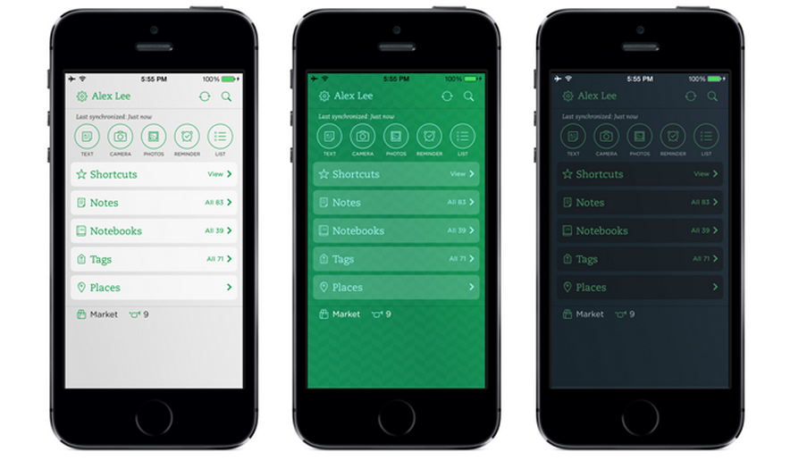 Perhaps the most substantial part of the update is the increased customization ability, which allows iOS users to switch up their homescreen with one of three different color themes — light, dark, and classic green. The New Note buttons have been moved to the top of the screen, as well.