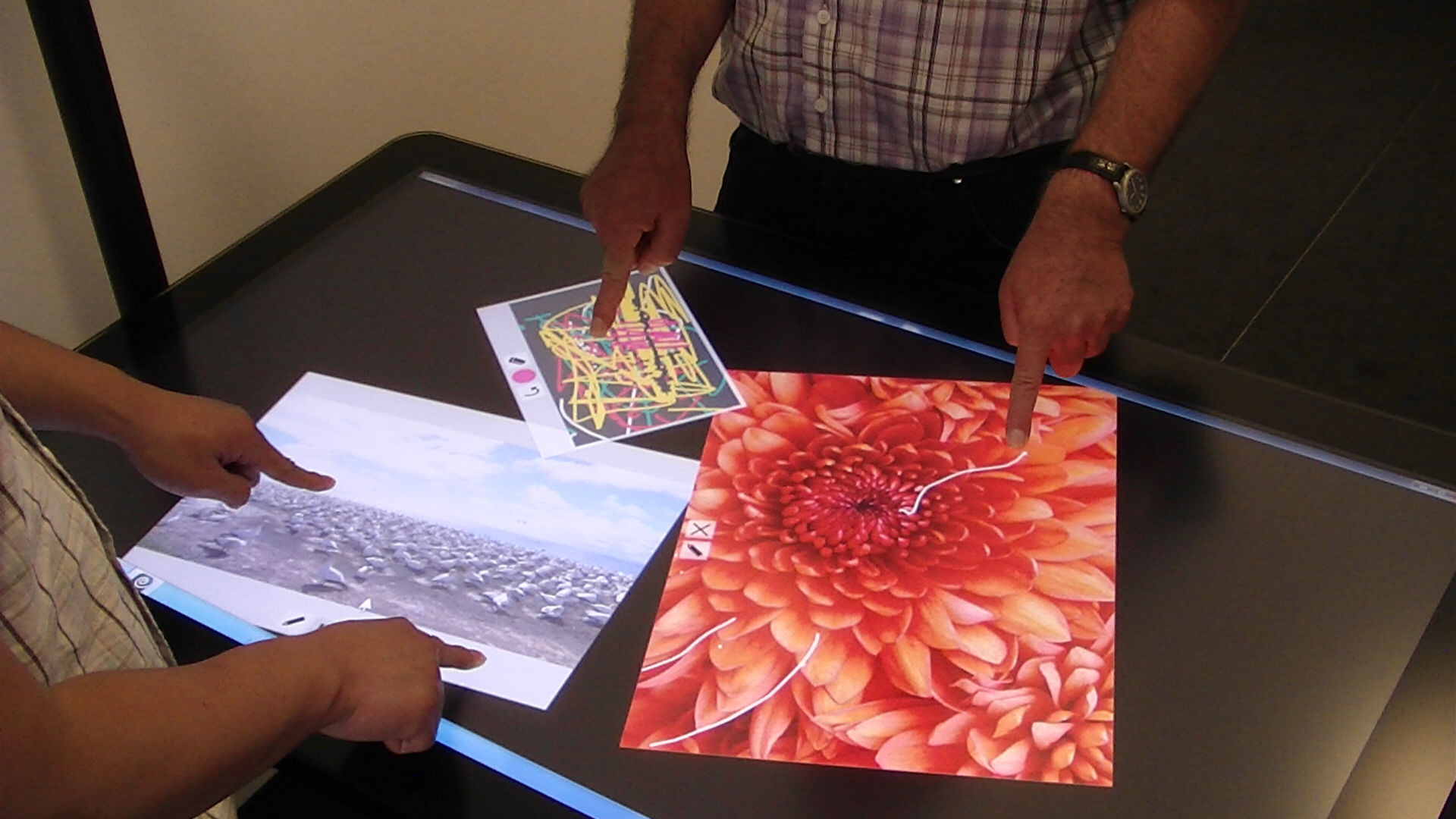 Rather than the Surface's clever touch-sensitive glass, Evoluce uses a regular 46-inch NEC digital signage LCD (as in the company's previous I-Voluce system) and suspends a Kinect a meter above. Thanks to the Surface 2.0 SDK you can do all of the usual photo and document manipulation, with multiple people zooming, rotating and flicking digital content around simultaneously; however, unlike Surface, Evoluce's system can spot how much water there is remaining in a glass placed on the table and other complex analysis.