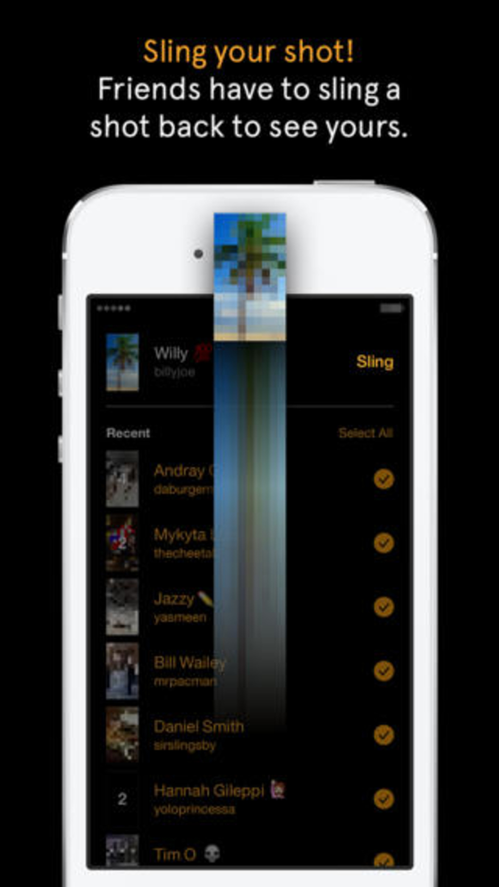 The tweak with Slingshot is in how you receive an initial message. Say I send you a message out of the blue; in order for you to see that first message, you have to send one back ahead of looking at it. It's like a confirmation system for beginning a chat or photo swap. Sounds smart, but will undoubtedly lead to a lot of throw-away "ready?" and "hi!" messages to start any conversation.
