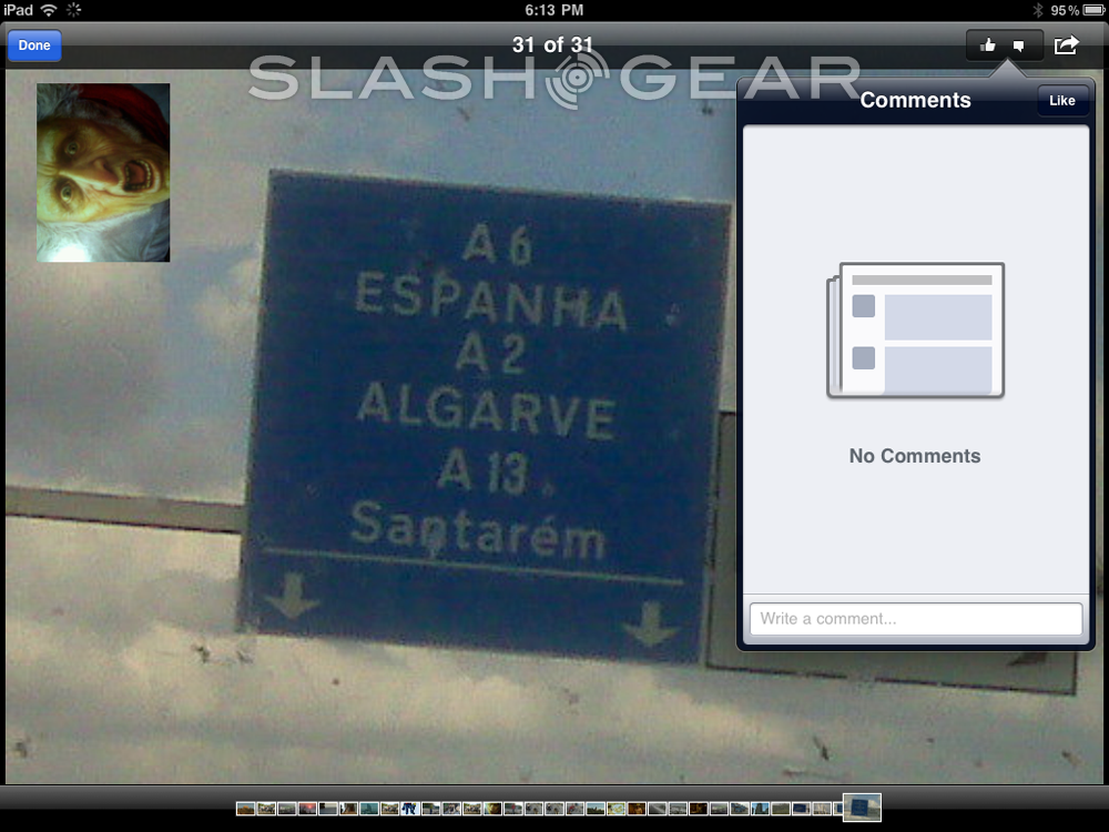 And it all works pretty great except for the ONE tiny bug found whilst viewing photos – that terrifying man face, the one you see in the photo below this paragraph, got stuck to the screen at some point, and wouldn't go away until the entire app was closed and re-opened. Terrifying! Other than that, everything looks nice.