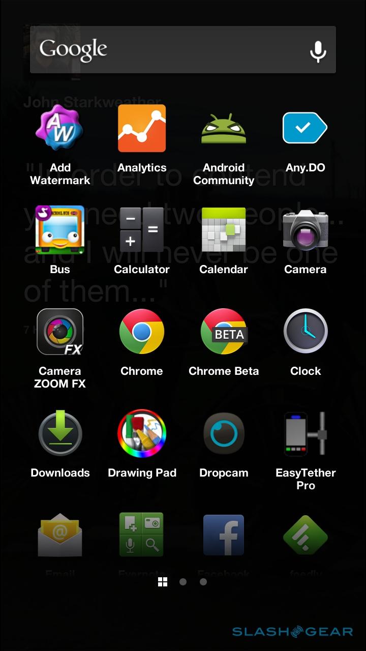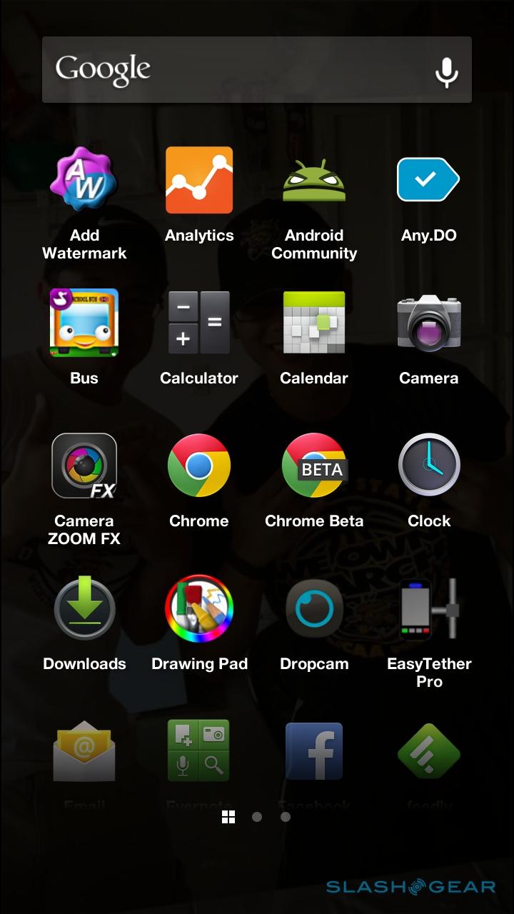 The app drawer also has a Google search bar at the top of the screen, but that's the only widget-style action you'll get. There's no support for any native Android or third-party widgets, and no way of accessing the regular Android homescreen, since Facebook Home replaces it completely. You do still get Google Now access, however, with a long-press on the home button calling it up; a double-tap opens the Android app switcher.